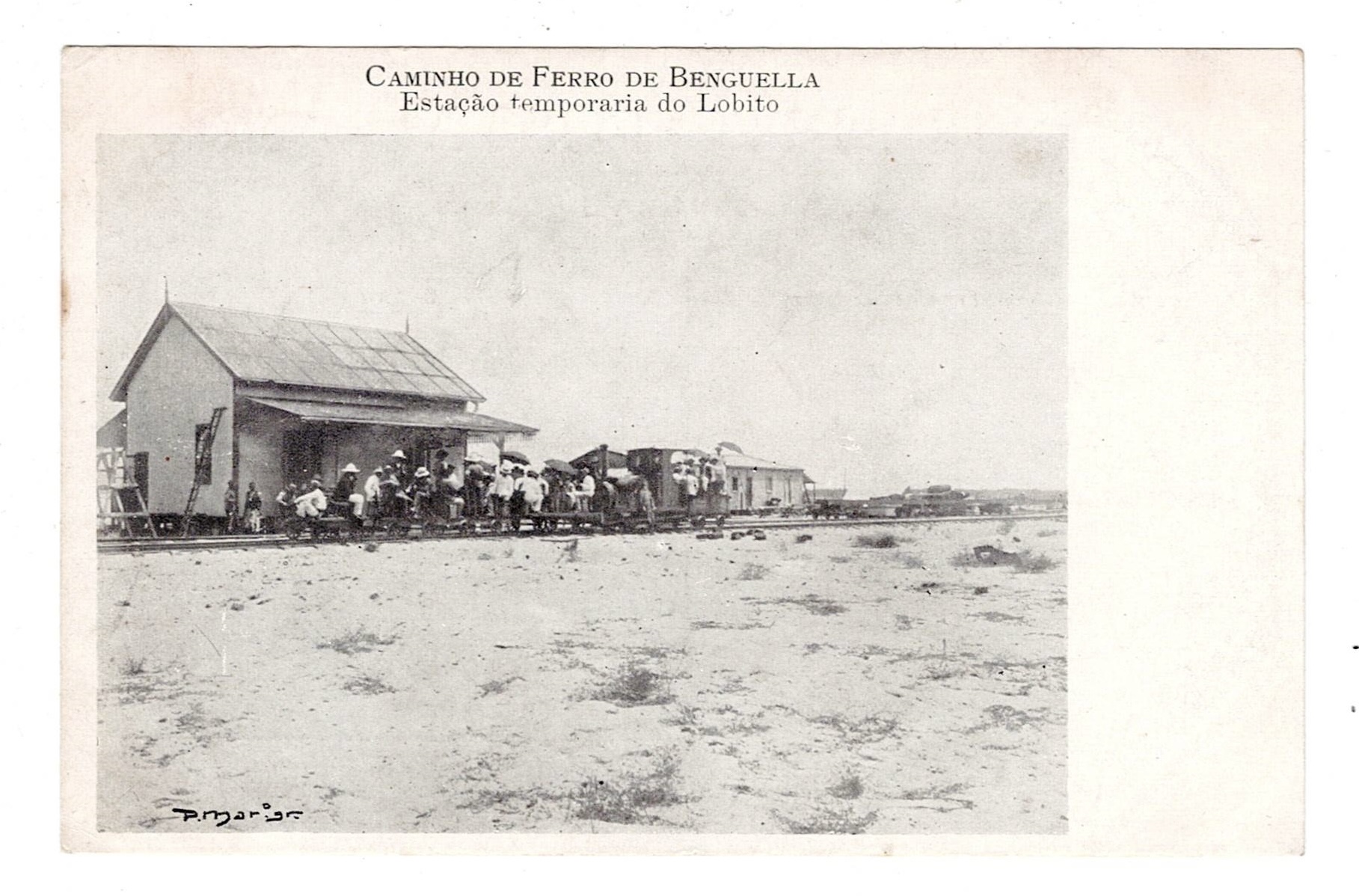 Railway Mail. Illustrated postcard from Angola, relating to the temporary station of Lobito, on the