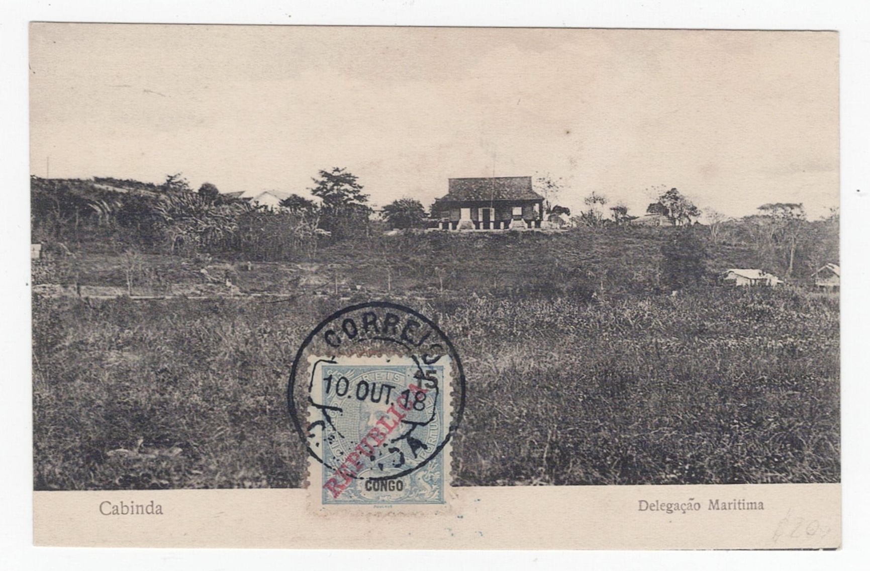 Illustrated postcard. Cabinda, Maritime Delegation, postage of 15 reis, D, Carlos Mouchon s/s