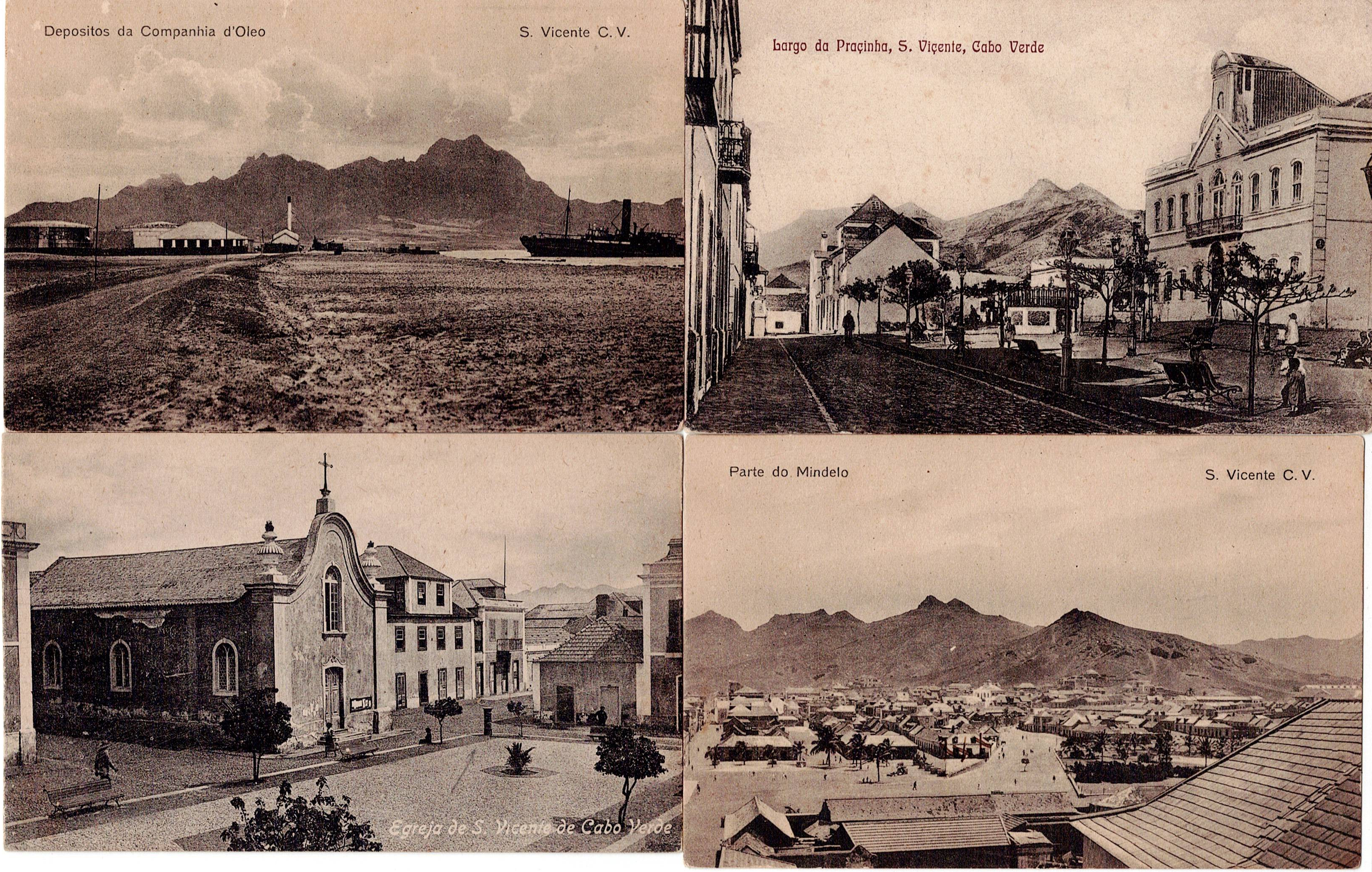 Illustrated postcards of Cape Verde. Set of four monochrome postcards with views of São Vicente, Cape