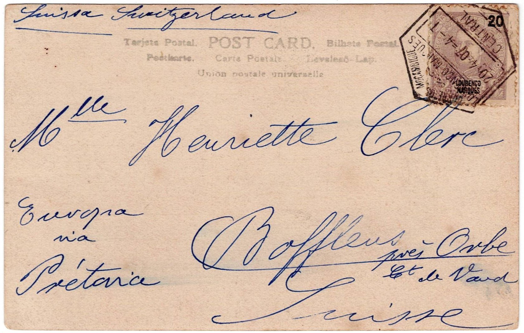 Illustrated Postcards Mozambique. Photographic postcard, circulated from Lourenço Marques on 20 April