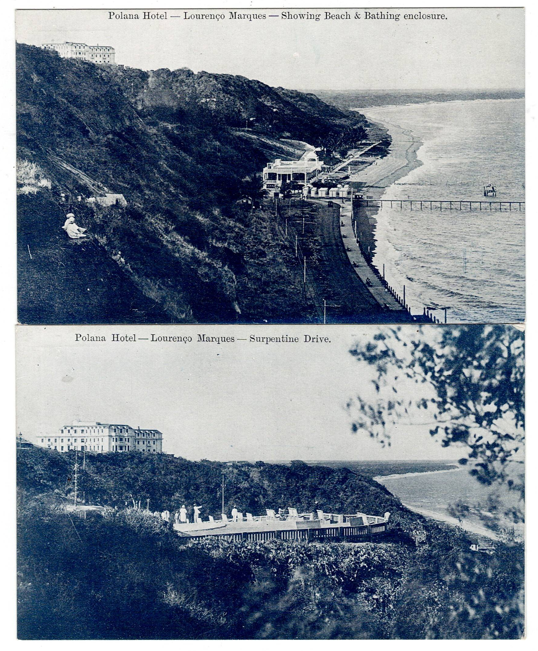 Illustrated Postcards. Set of two different monochrome postcards with the caption "Polana Hotel -