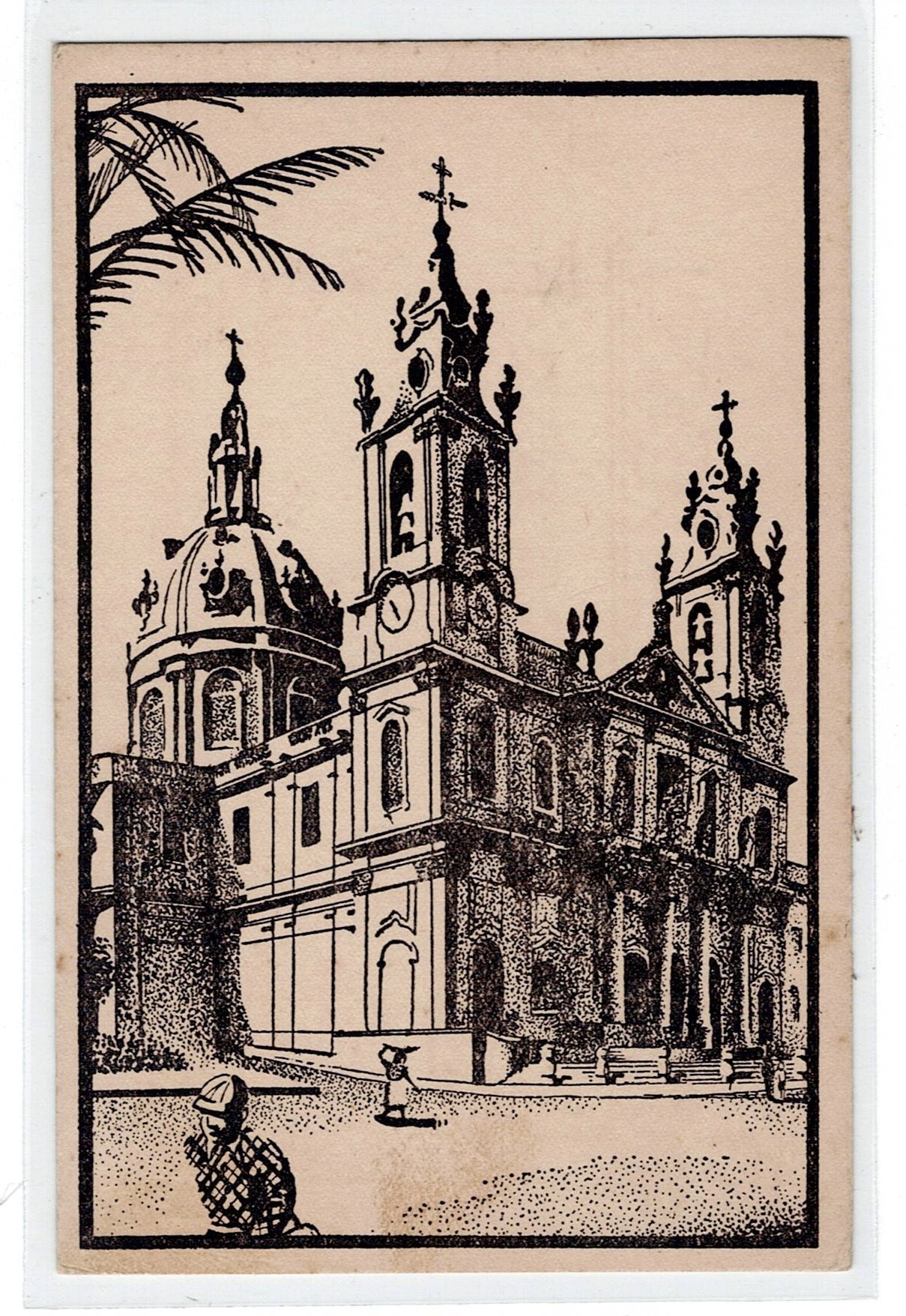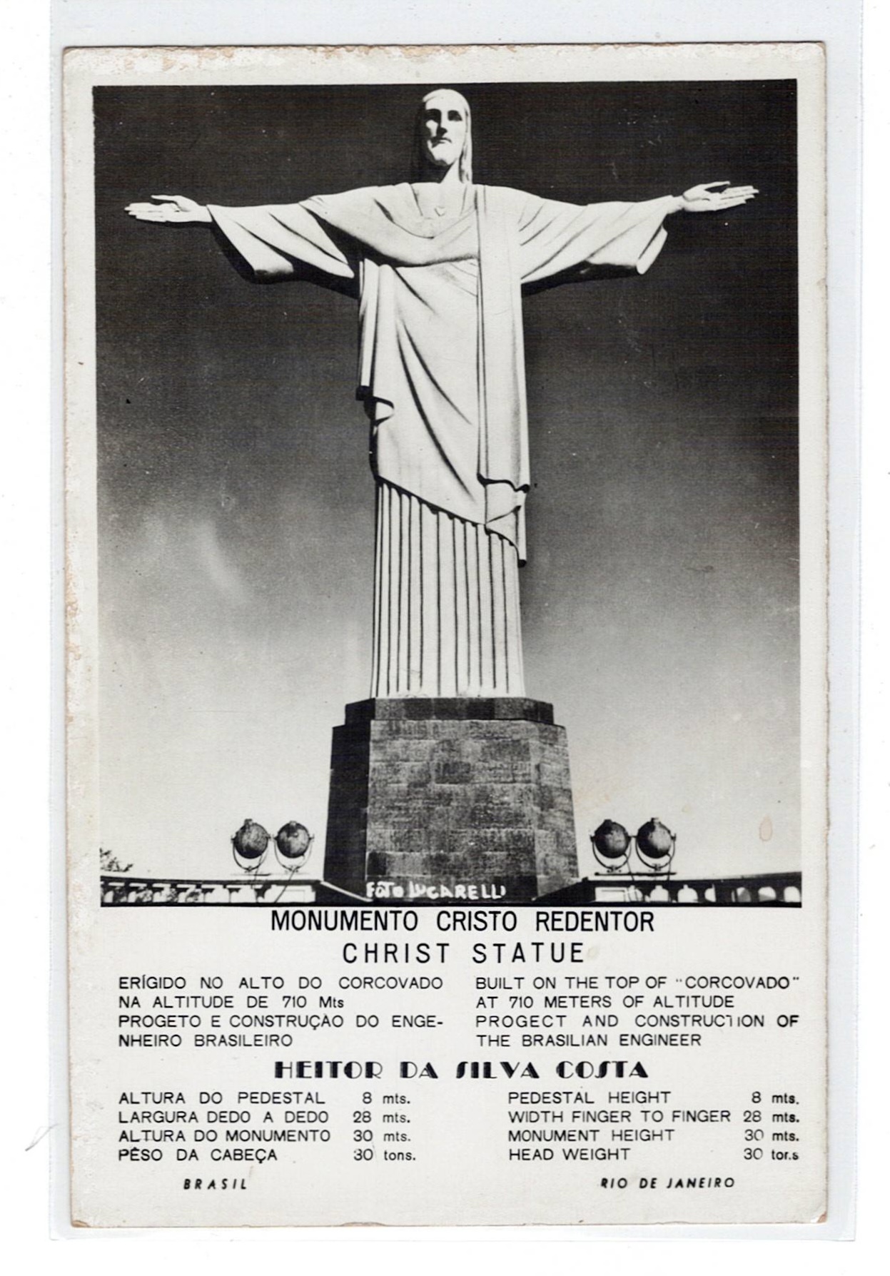 Illustrated Postcards Locations. Monochrome postcard with an image of the statue of CHRIST THE