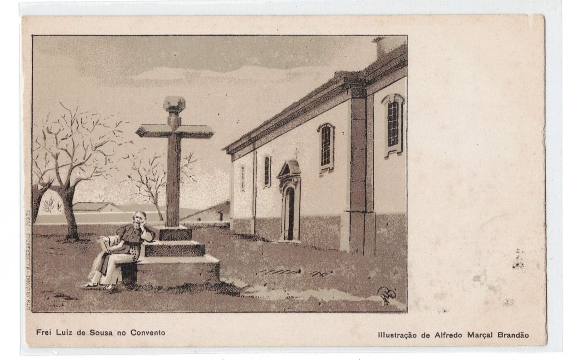 Illustrated Postcards ART. Monochrome postcard with the caption "Frei Luiz de Sousa at the Convent" and