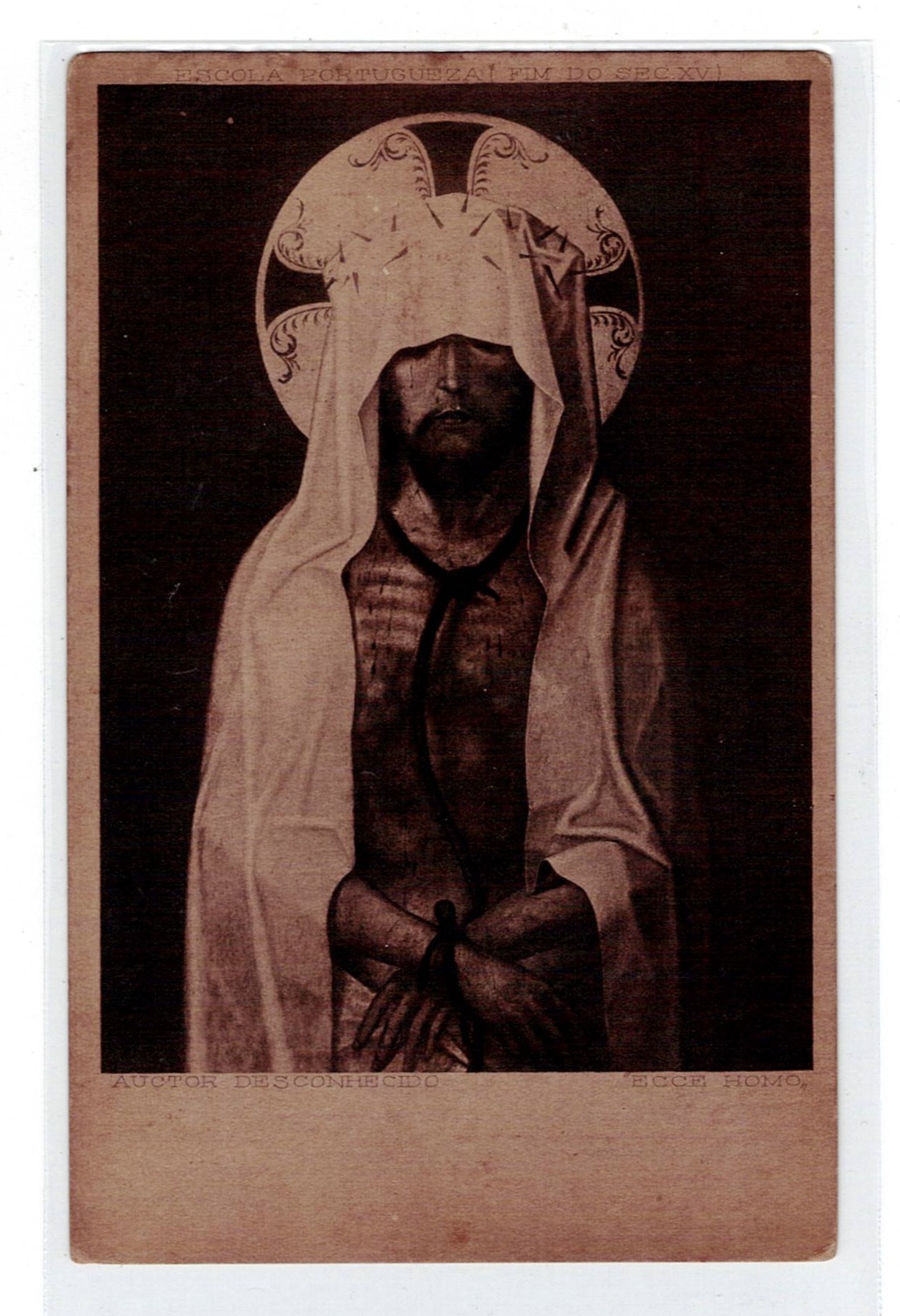 Illustrated Postcards ART. Monochrome postcard with image of Christ and caption "Unknown author - ECCE