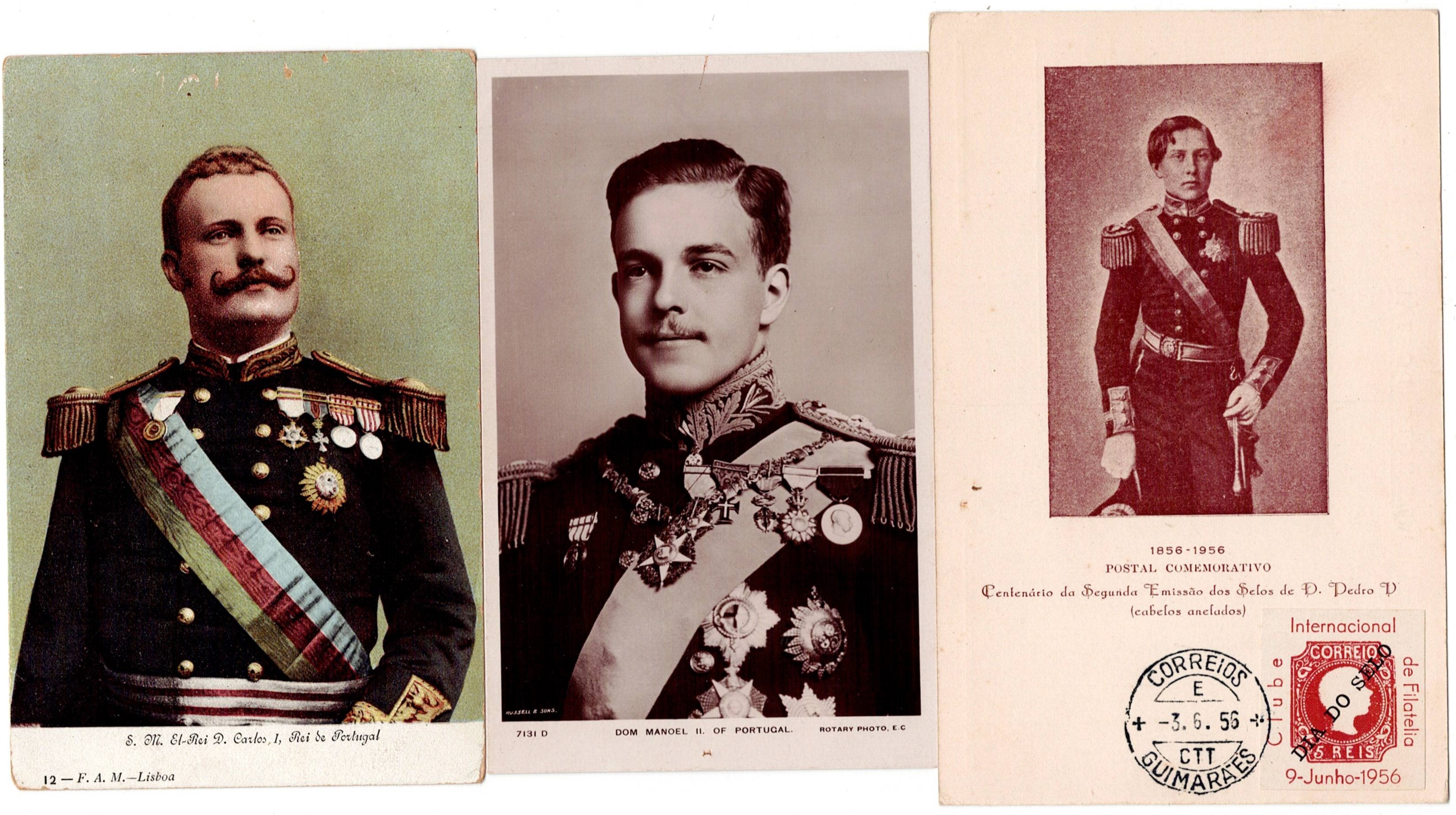 Illustrated postcards, 3 uncirculated postcards with a photo of D. Carlos, D. Manuel and a drawing of