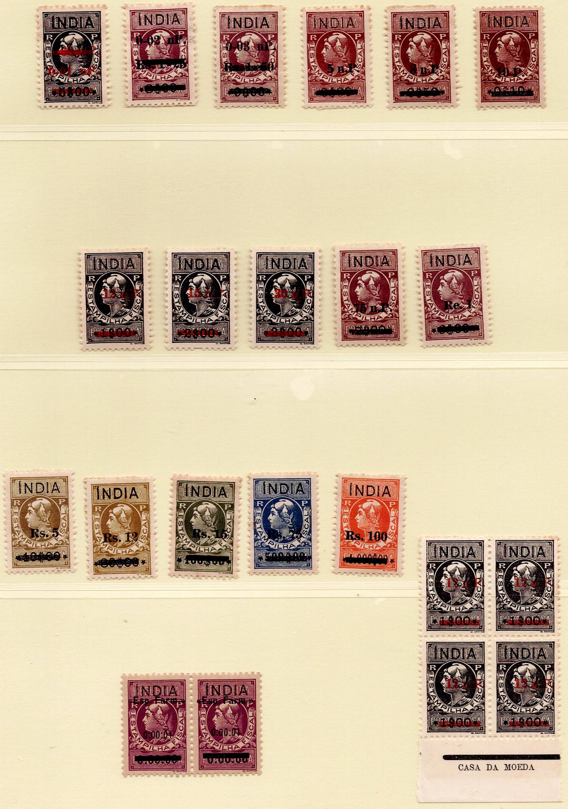 Fiscal India. Set of 22 surcharged revenue stamps fromIndia, including a pair and a leaf-edged