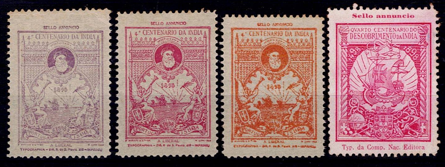 India Stickers. Set of four stickers from 1898, in various colors with the caption "4th Centenary of