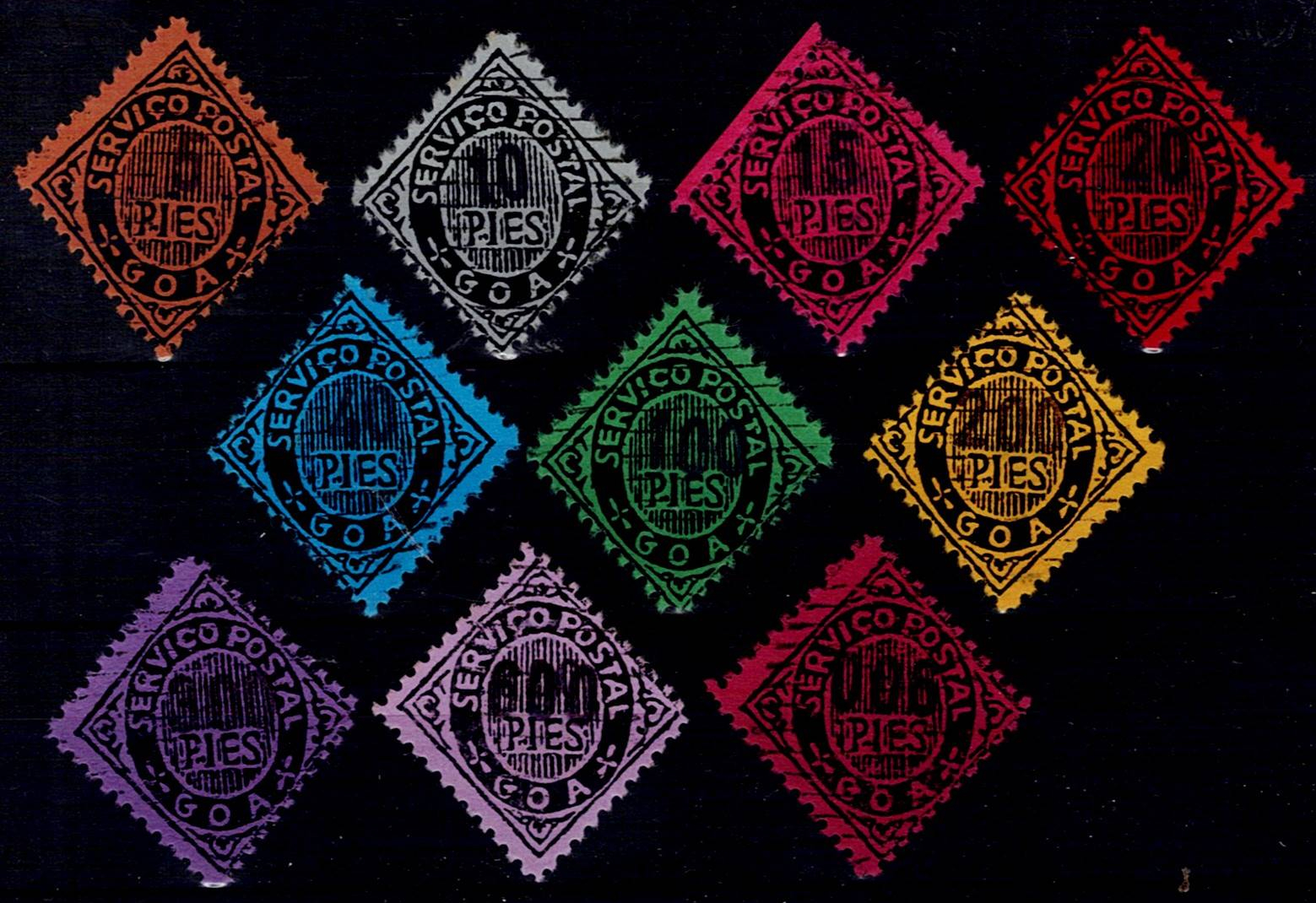 India Stickers. Set of 10 stickers in various colors produced in Goa for the centenary of the postage