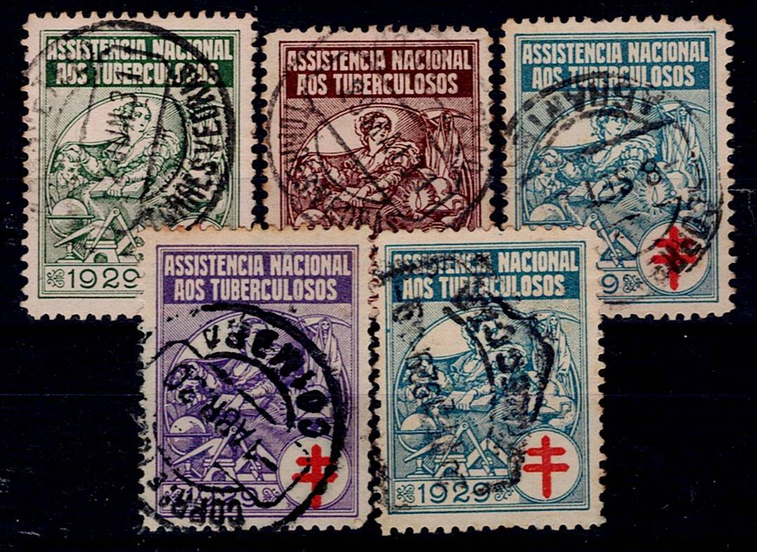 Portugal ANT stickers. 5 used stickers with different dated stamps, circular and hexagonal, from the