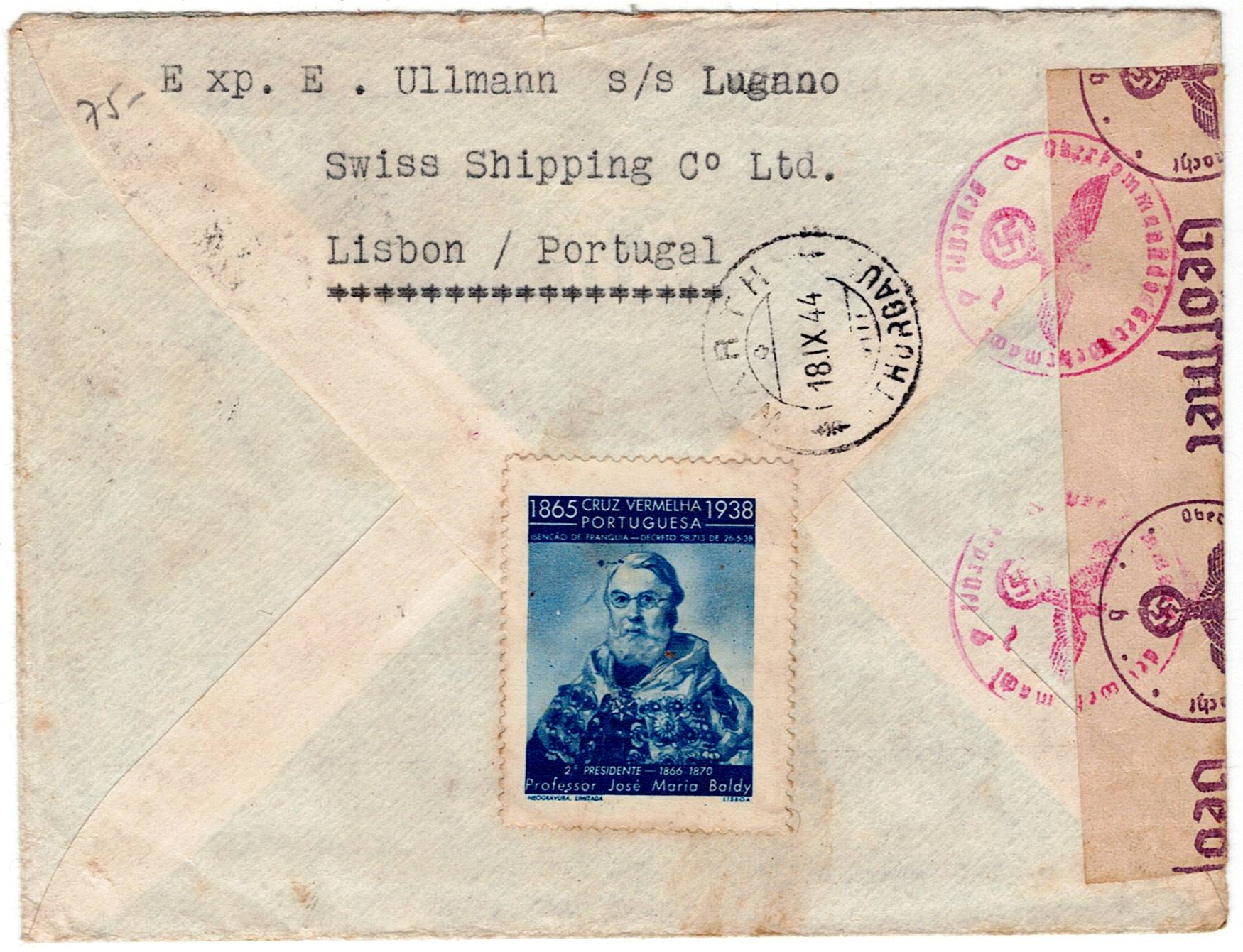 propellers), with 3 Red Cross stickers, opened by the German military censor, arrived in Warth on 18 September 1944.(Image 1)