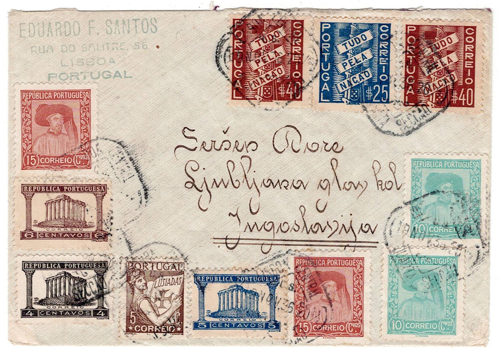 Portugal. Republic. Letter sent from Lisbon on 19 November 1938 to Yugoslavia, with multiple postage
