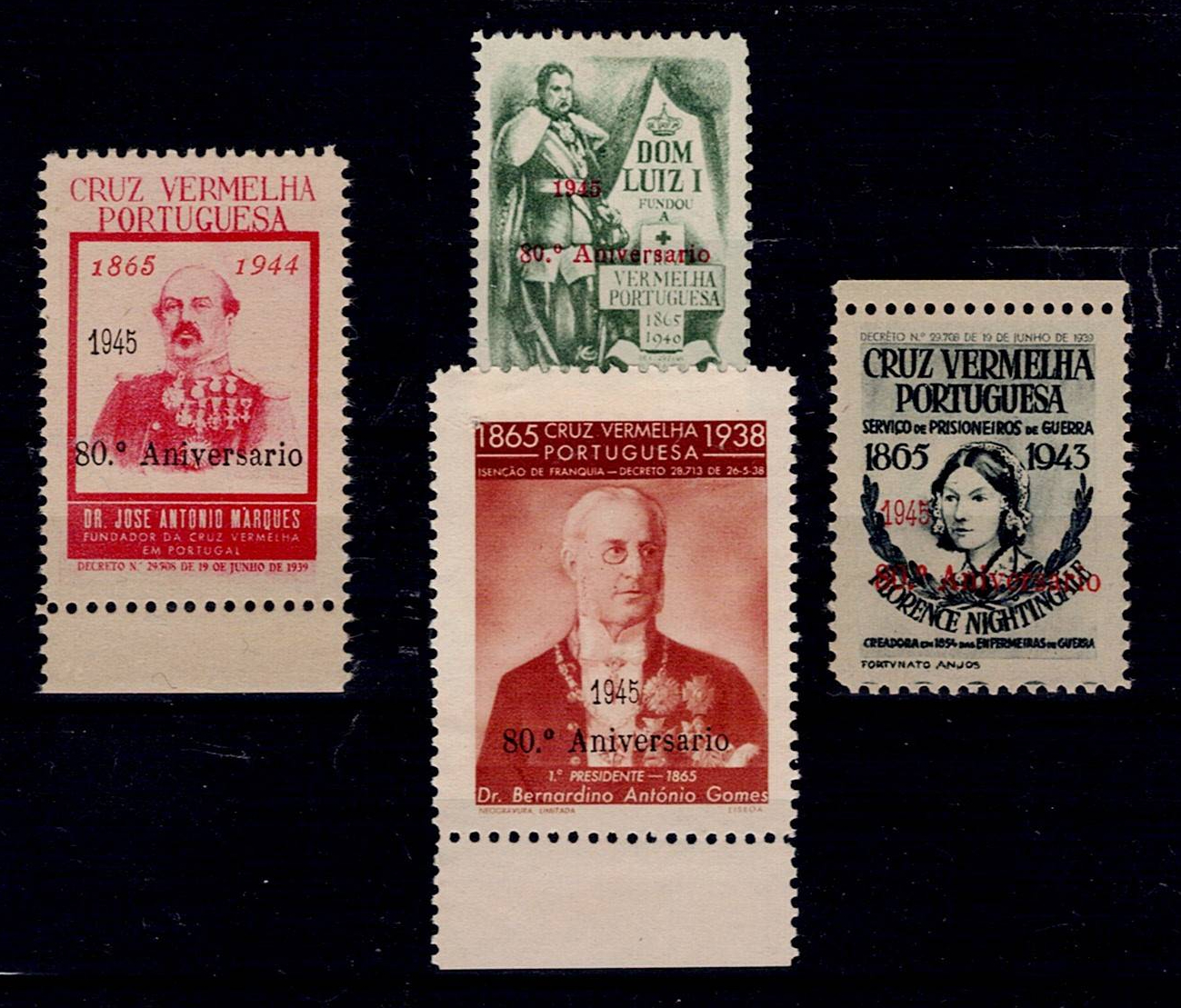 Portugal 1945 Red Cross Stickers. Set of four stickers commemorating the 80th anniversary of the Red