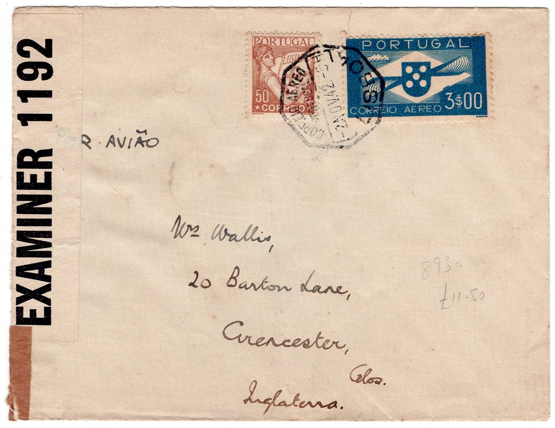 Airmail Portugal.1942. Letter sent from Lisbon on 2.11.1942, postage of 3$50 (3$00 airmail stamp and