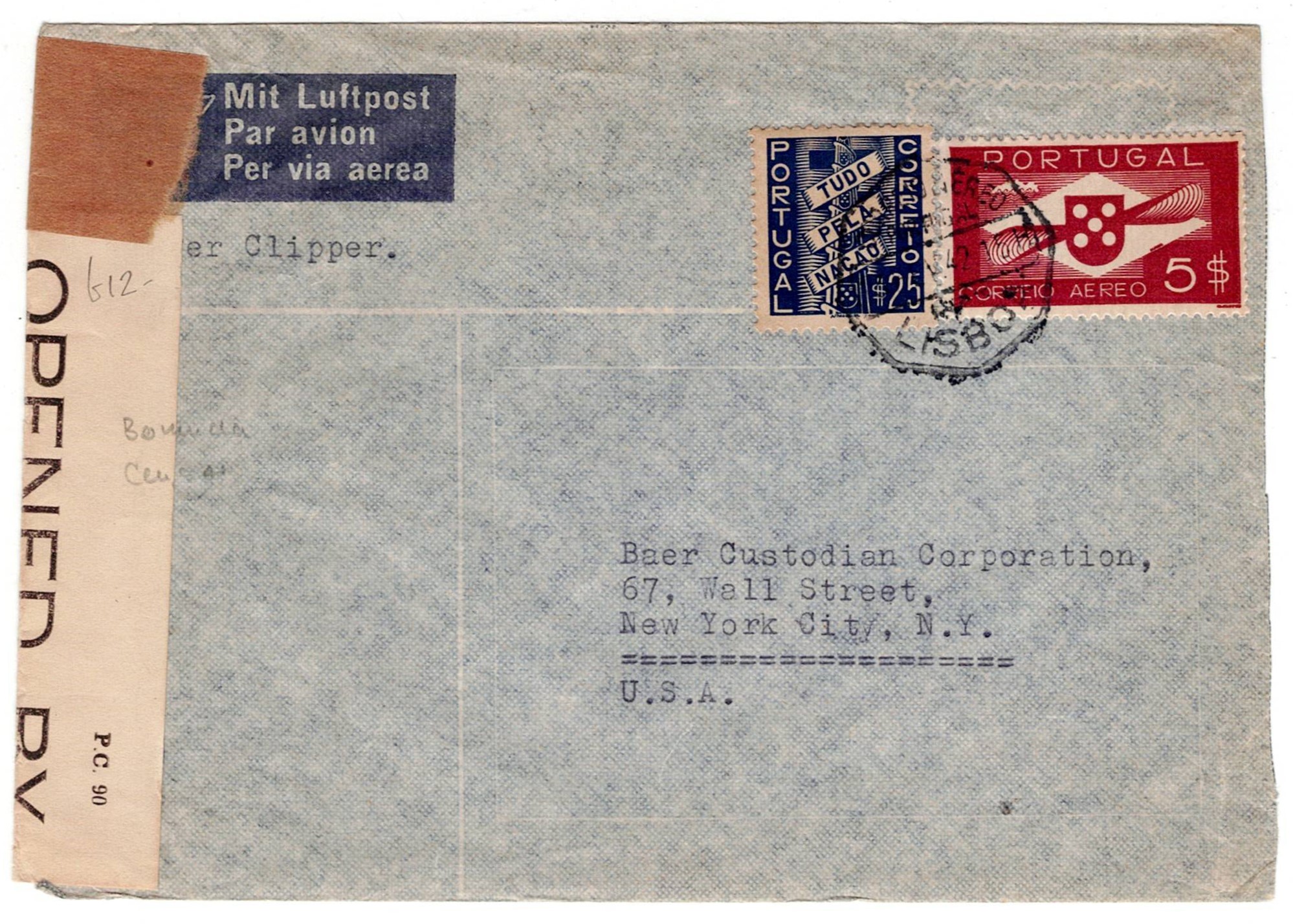 opened by the censor in Lisbon and again by the American censor.(Image 1)