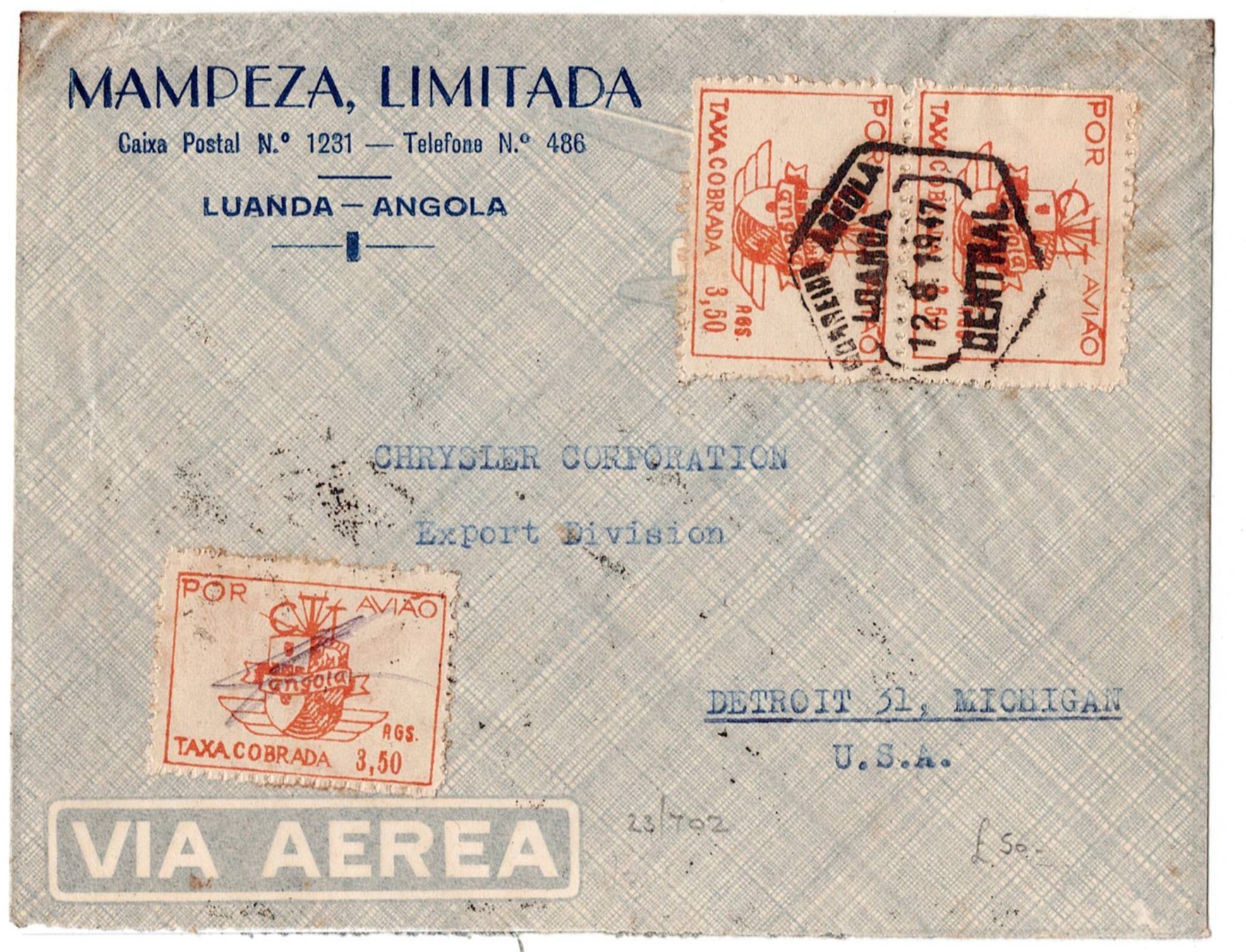 Airmail. Angola.1947. Letter of Luanda postage of 10.50 Ang. (CTT emblem, pair of 3.50 and one