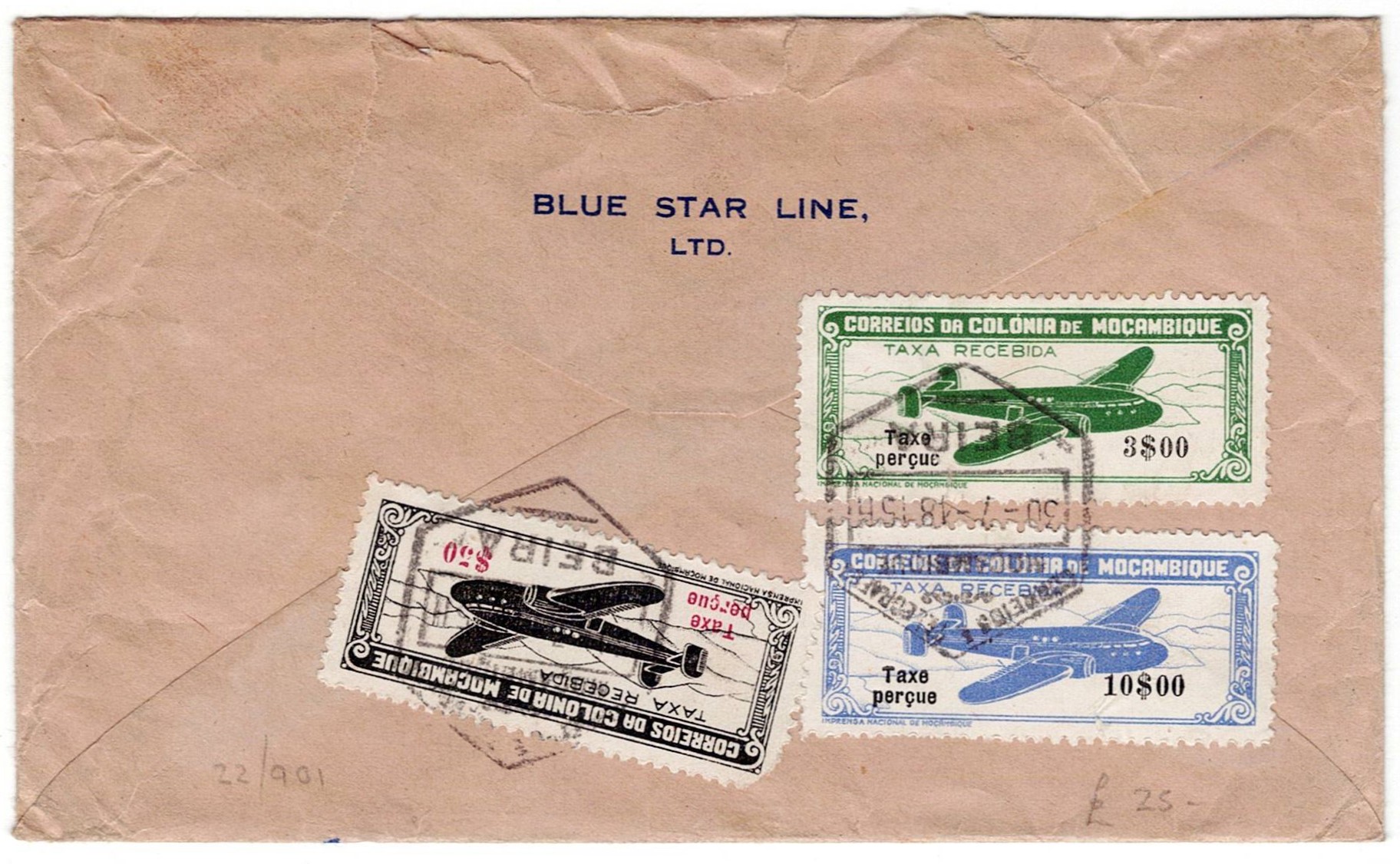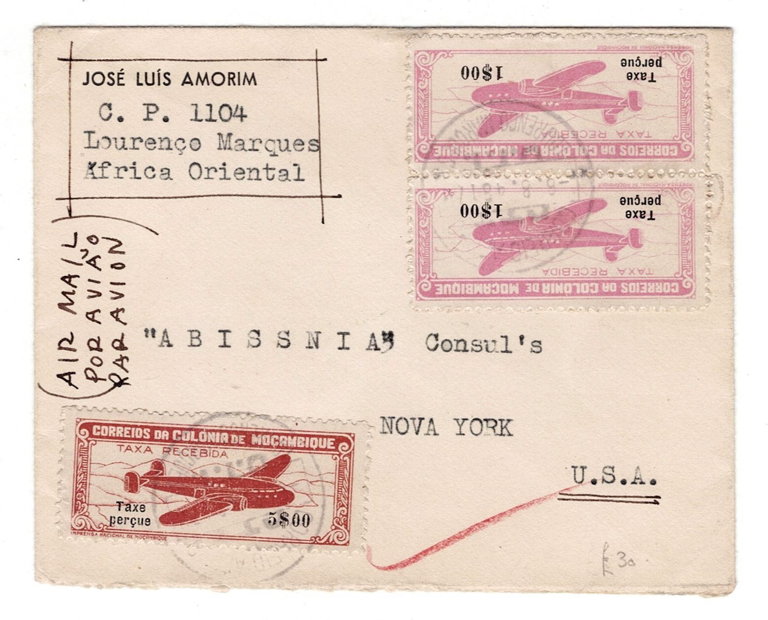 Airmail Mozambique.1948. Letter sent from Lourenço Marques on 30.7.1948, postage of 12$50 (stamps of