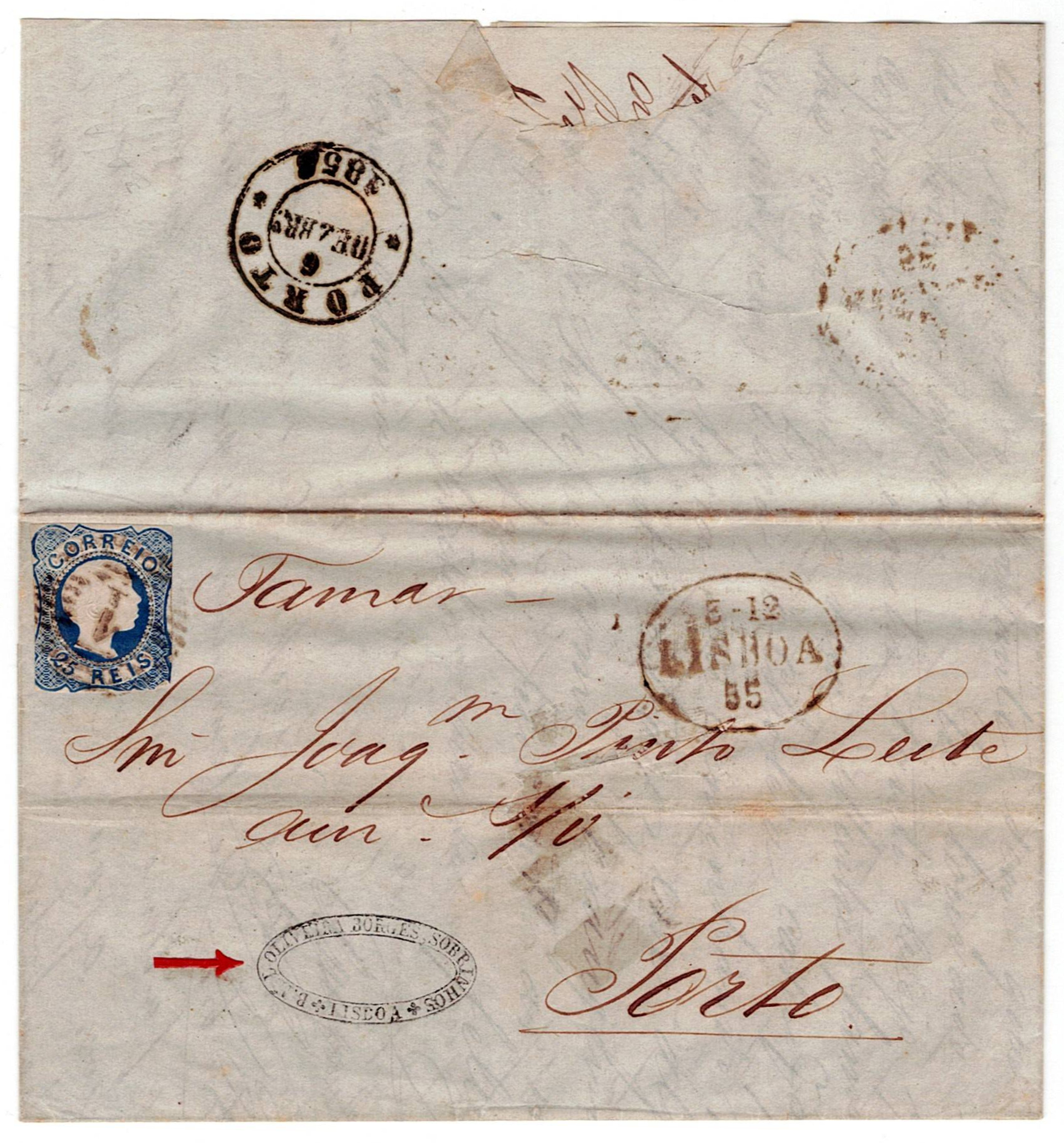 Lisbon mail on 3.12.1855, franked at 25 reis, D. Pedro, arrival in Porto on 6.12.(Image 1)