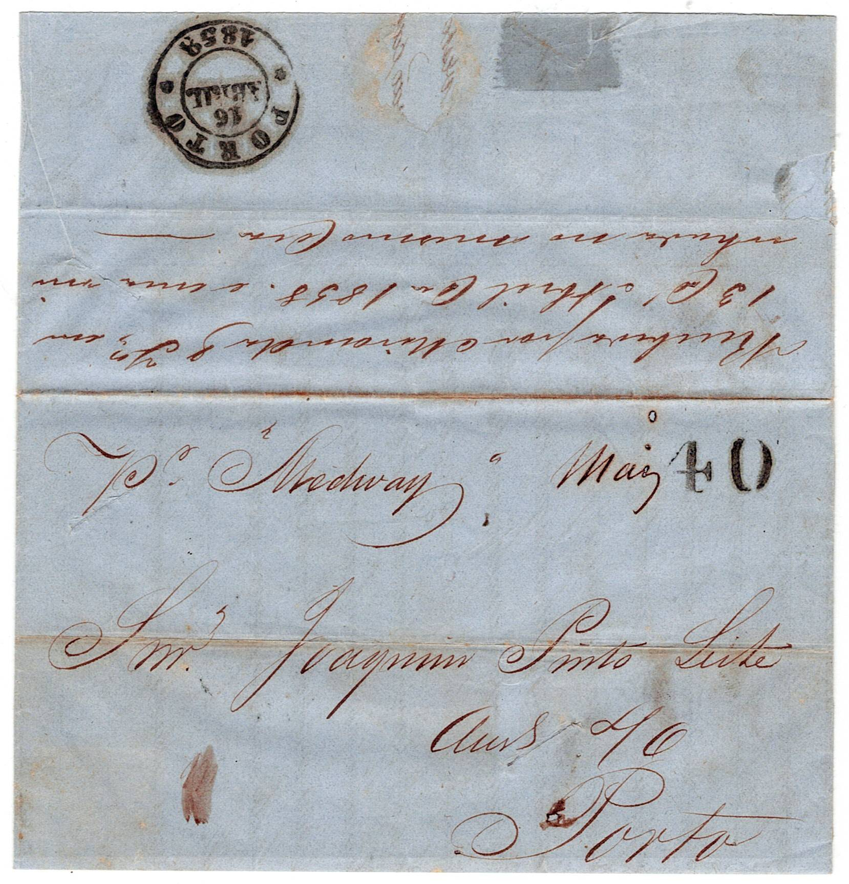 1306 imageSea Mail. Brazil. Letter from Baía 21 March 1848, transported by hand on the packet boat “Medway” to Lisbon, where it was posted and a postage of 40 reis was applied for the route from Lisbon to Porto.(Image 1)