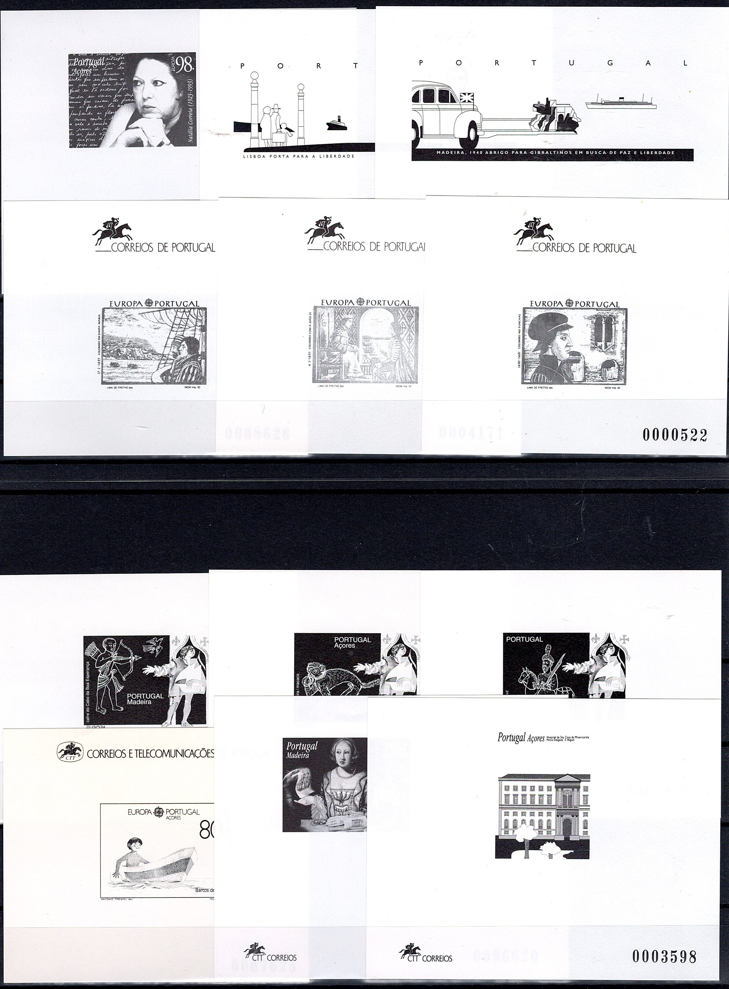 1348 imagePortugal * Set of 18 proofs, of which 16 are black and white and two are blue, extracted from the annual portfolios of the 1980s and 1990s, mostly themed EUROPA, from Portugal, Azores, and Madeira, all numbered. Lot to be seen.(Image 1) (Image 2)