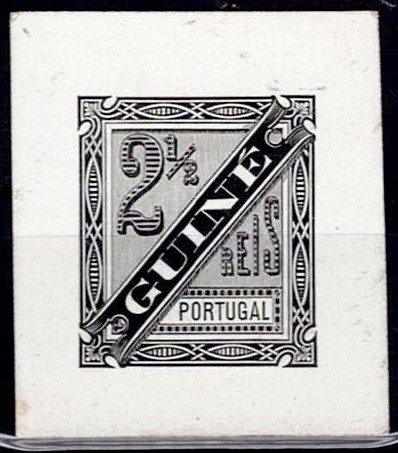 1364 imageGuinea * 1894 – D. Carlos I * Newspapers. Drawing and engraving by Azedo Gneco. MF34, 2 ½ réis. Black colour proof on cardboard, not perforated. Copy without defects or repairs, with good colour. MB and MR.(Image 1)