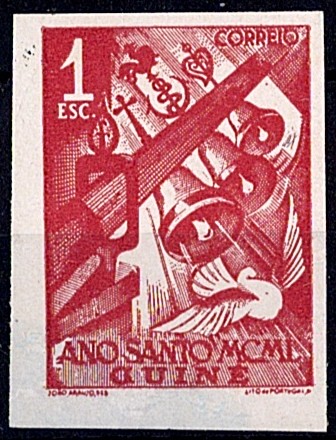 1365 imageGuinea * 1950 – Holy Year. Drawing by João Araújo. MF263, 1E. Color proof in lilac-red on enamel paper, not approved for issue, not perforated, with original hingeless gum. Copy without defects or repairs and good color.(Image 1)