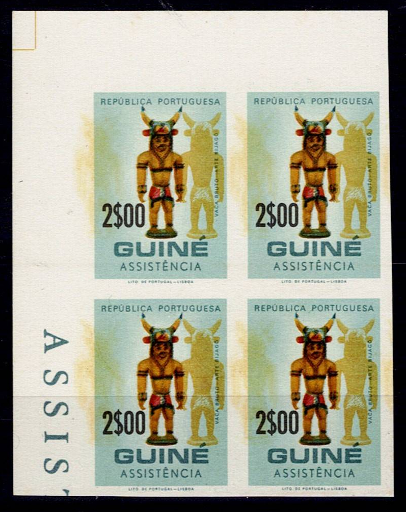 1366 imageGuinea 1934 Postal Tax, Assistance. Undented BLOCK of stamp Mf#IP23, 2$00 Cow Gross with ERROR, BROWN COLOR OFFSET to the right. New ungummed proofs, printed on paper reused by the printer.(Image 1)