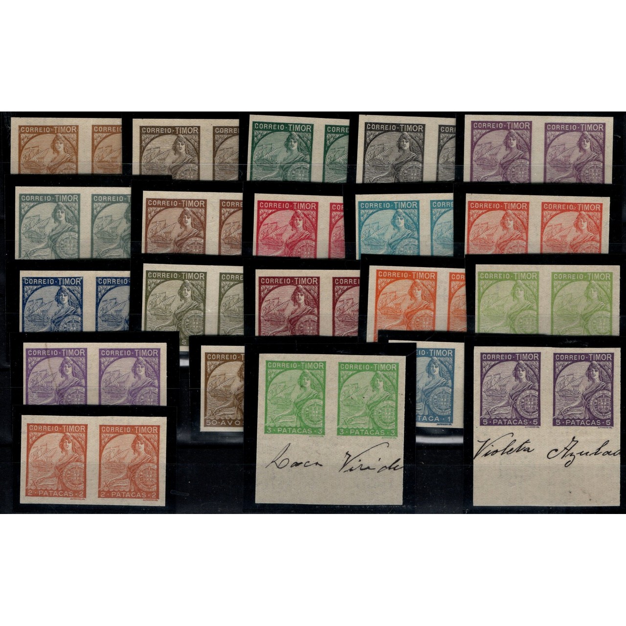 1398 imageTIMOR. 1935 - Standards. Complete series of proofs in undented pairs, CE206/26, the last four values ​​with gum and without hinge, of which the last two have handwritten notes on the lower edge of the sheet.(Image 1)