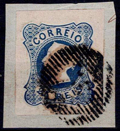 1404 imagePortugal 1853 D. Maria. Stamp on fragment Mf#2c, 25 reis blue, imprint II. Used stamp, with 20-bar postmark from the 1st postal reform. Good(Image 1)