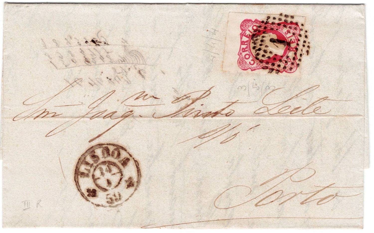 1427 imagePortugal. Letter sent from Lisbon on January 14, 1859, postage of 25 reis D. Pedro curly hair, to Porto, January 16(Image 1)