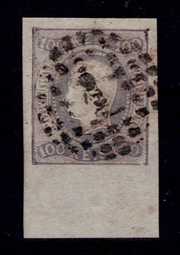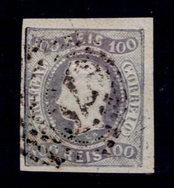1456 imagePortugal 1866/67 – D. Luís I. Curved ribbon, not serrated. Mf#25a, 100 réis, mauve lilac, smooth paper, not serrated, type Ia. Used copy, signed on the back, without defects or repairs, with 1 short margin and 3 normal margins. Catalogue value €180.(Image 1)