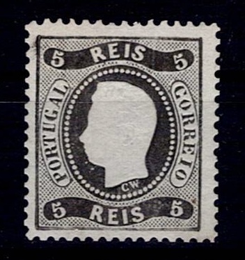1461 imagePortugal 1867/70 – D. Luís I. Curved ribbon, serrated. Mf#27, 5 reis, black, smooth paper, serrated. New copy, with non-original gum, with good color and relief. Catalogue value € 100 .(Image 1)