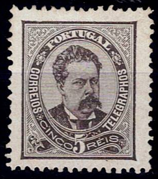 1509 imagePortugal 1884-87 D. Luís de frente, new values. Stamp Mf#60g, 5 reis black gray, on porcelain paper, perforation 12 3/4. New copy, ungummed, with good color. Catalog value €35.(Image 1)