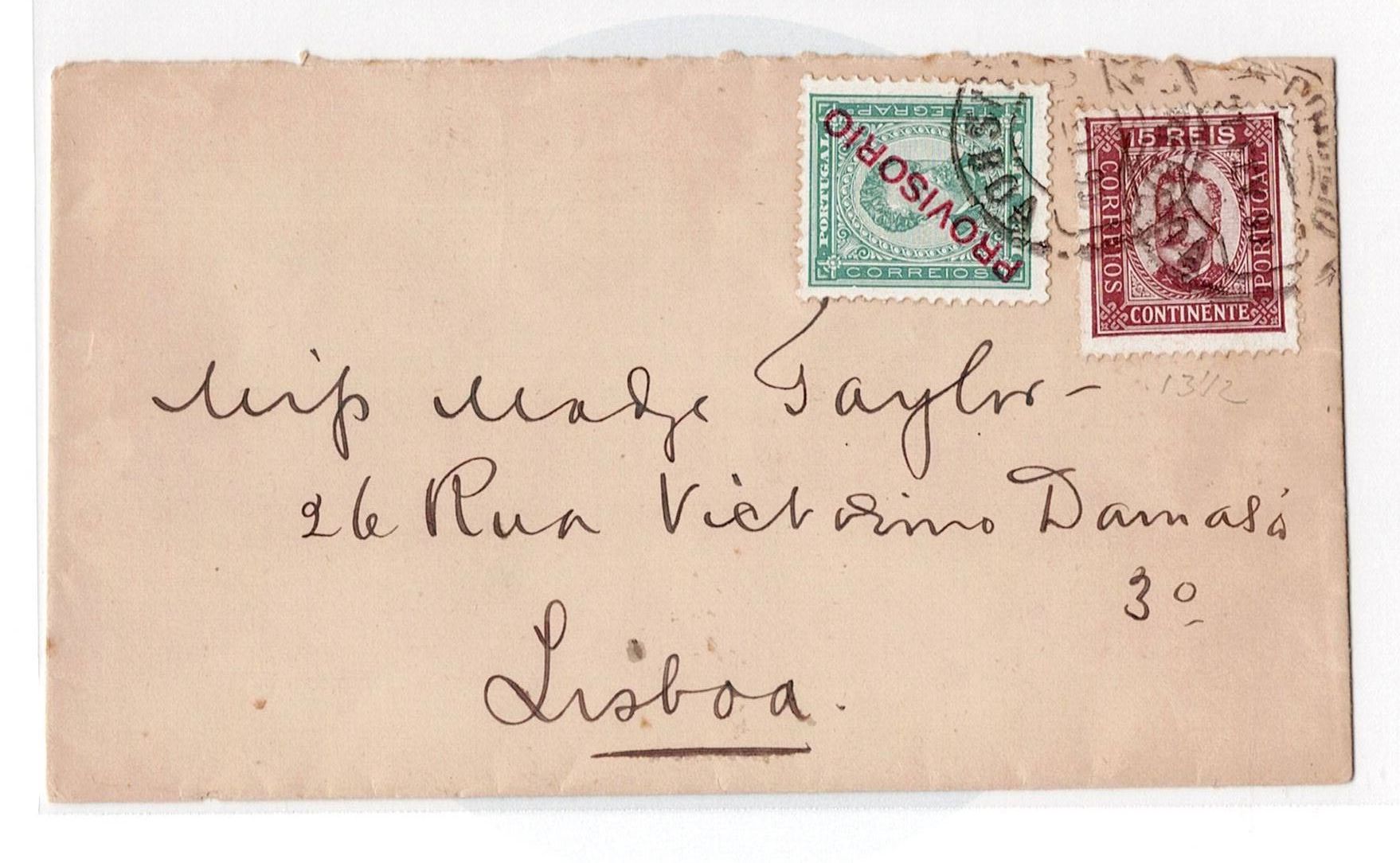 1521 imagePortugal. 1893. D. Carlos, issued by Diogo Neto. Letter from Lisbon dated 21.2.1894, postage 25 reis (15 reis CE#74 and 10 reis Provisional CE#83, for Lisbon. On the back, mark of the 6th expedition.(Image 1)