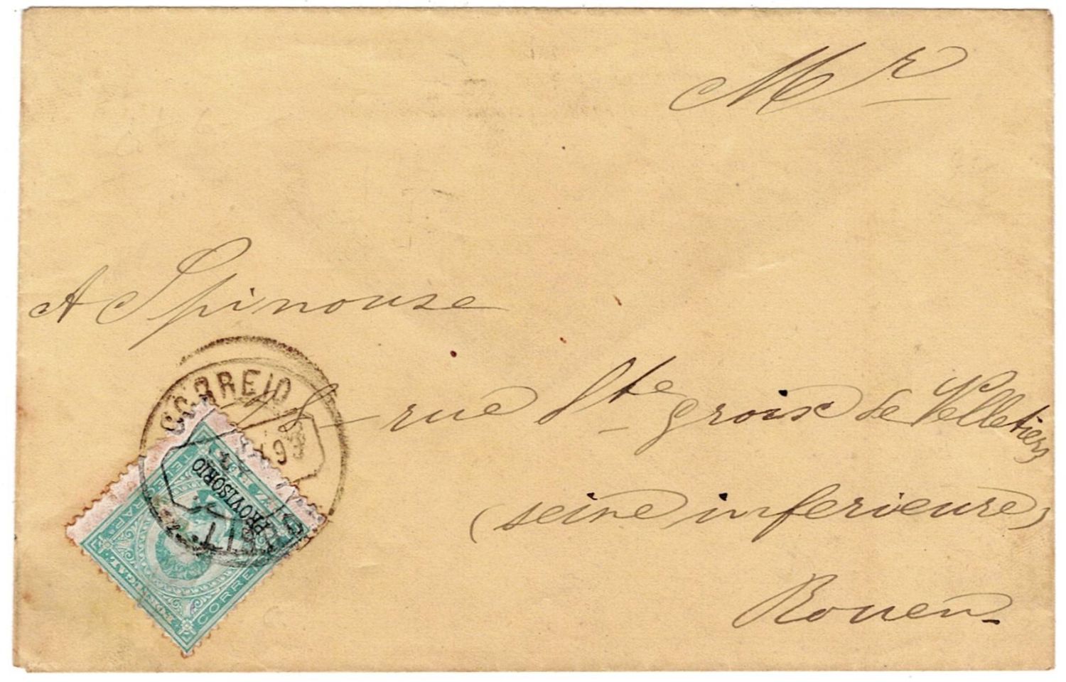 1523 imagePortugal. D. Luis Provisório. Open letter, paying printing fee, postage of 10 reis MF#81, sent from Lisbon in February 1893 to Rouen, France.(Image 1)