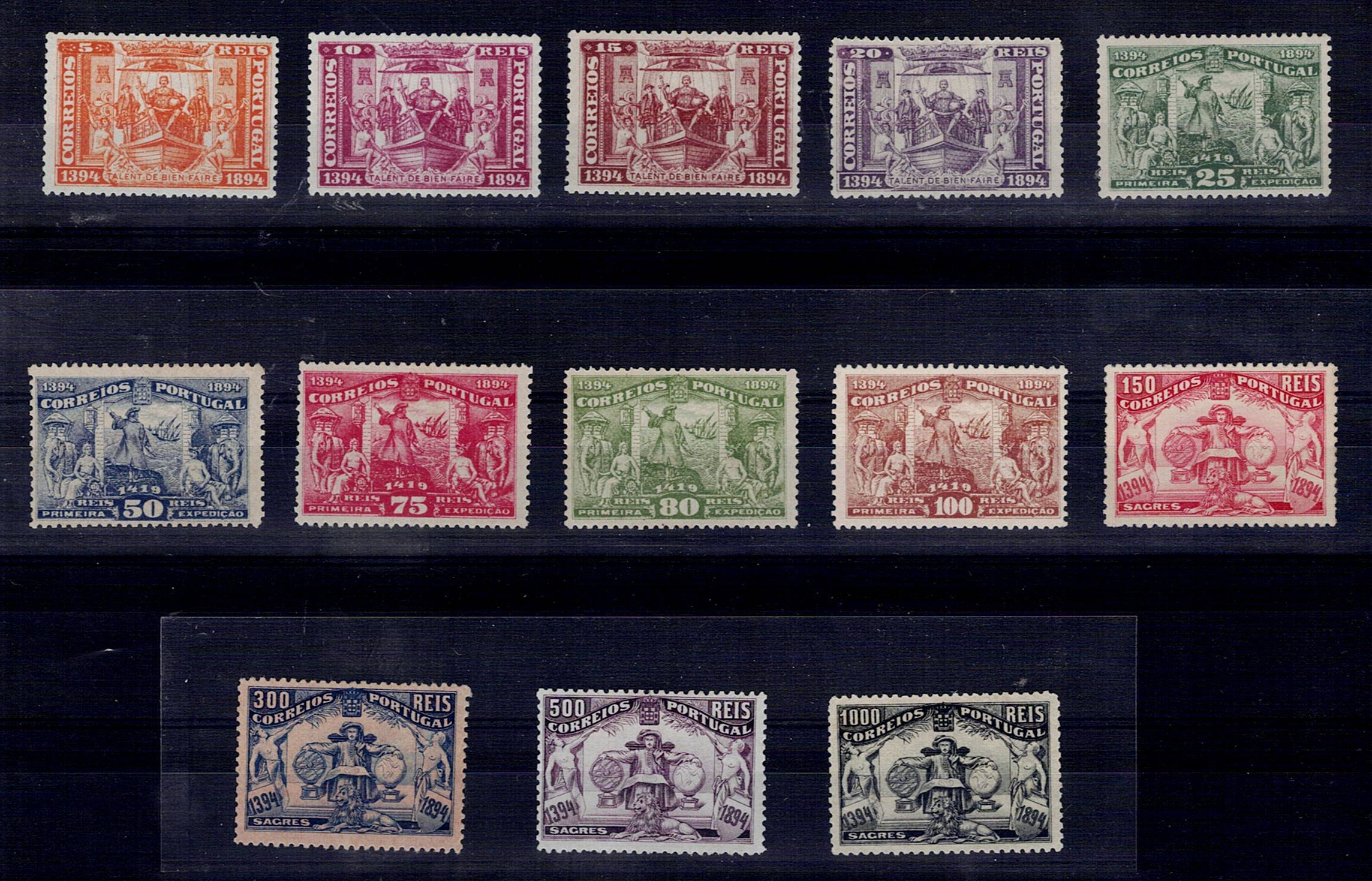 1524 imagePortugal 1894 - 5th Centenary of the Birth of Prince Henry the Navigator. Complete series of Mf#98-110, dotted paper. New, ungummed, good quality stamps, mostly well-centered and in good color. Catalog value €1,170.(Image 1)