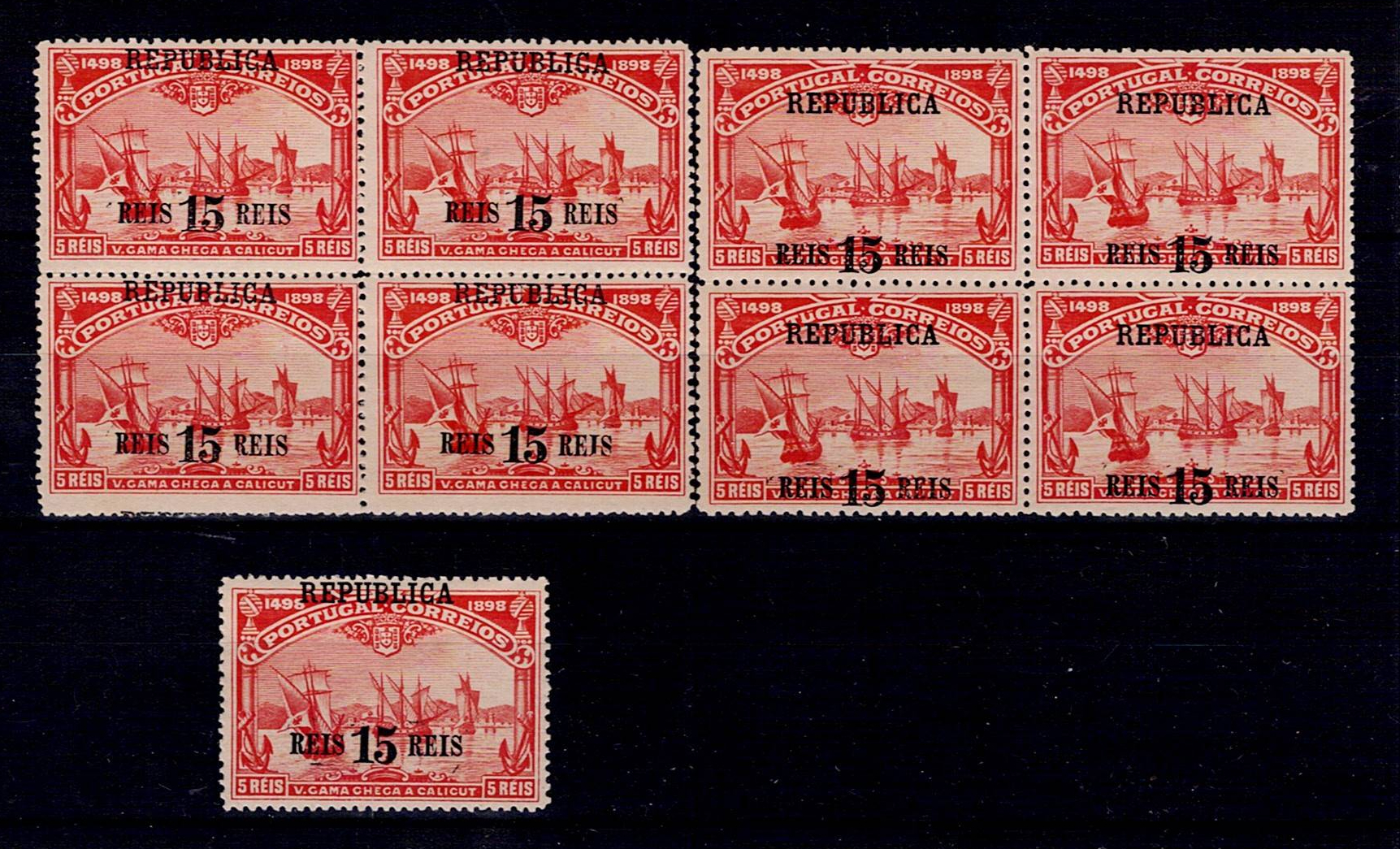 Portugal 1911 - 4th Centenary of the Discovery of the Sea Route to India, with REPUBLIC overprint, on