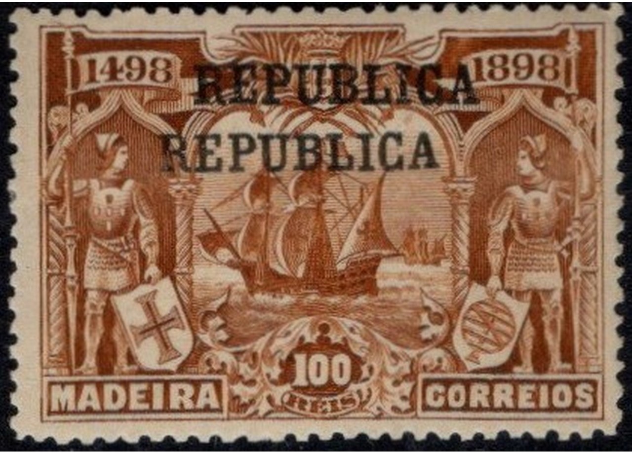 1911 - 4th Cent. of the Desc. of the Sea Route to India. 1898 Madeira postage stamps with "REPUBLICA"