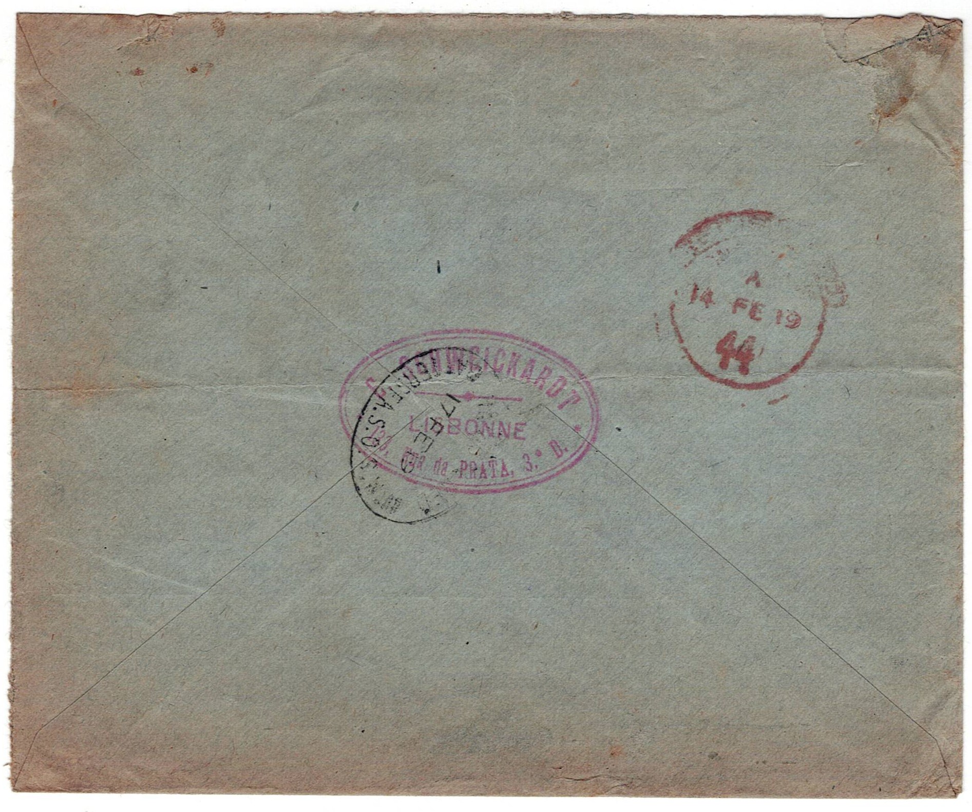 postage consisting of 1 cent CE stamps #221, 2 cent CE stamps #223 and 5 cent CE stamps #227, and 10 cent CE stamp #215, to London, 14.2. It passed through censorship in Lisbon.(Image 1)