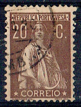 Portugal 1917-20 Ceres, new rates and colors. Stamp Mf#233a, 20 centavos, salmon brown, colored