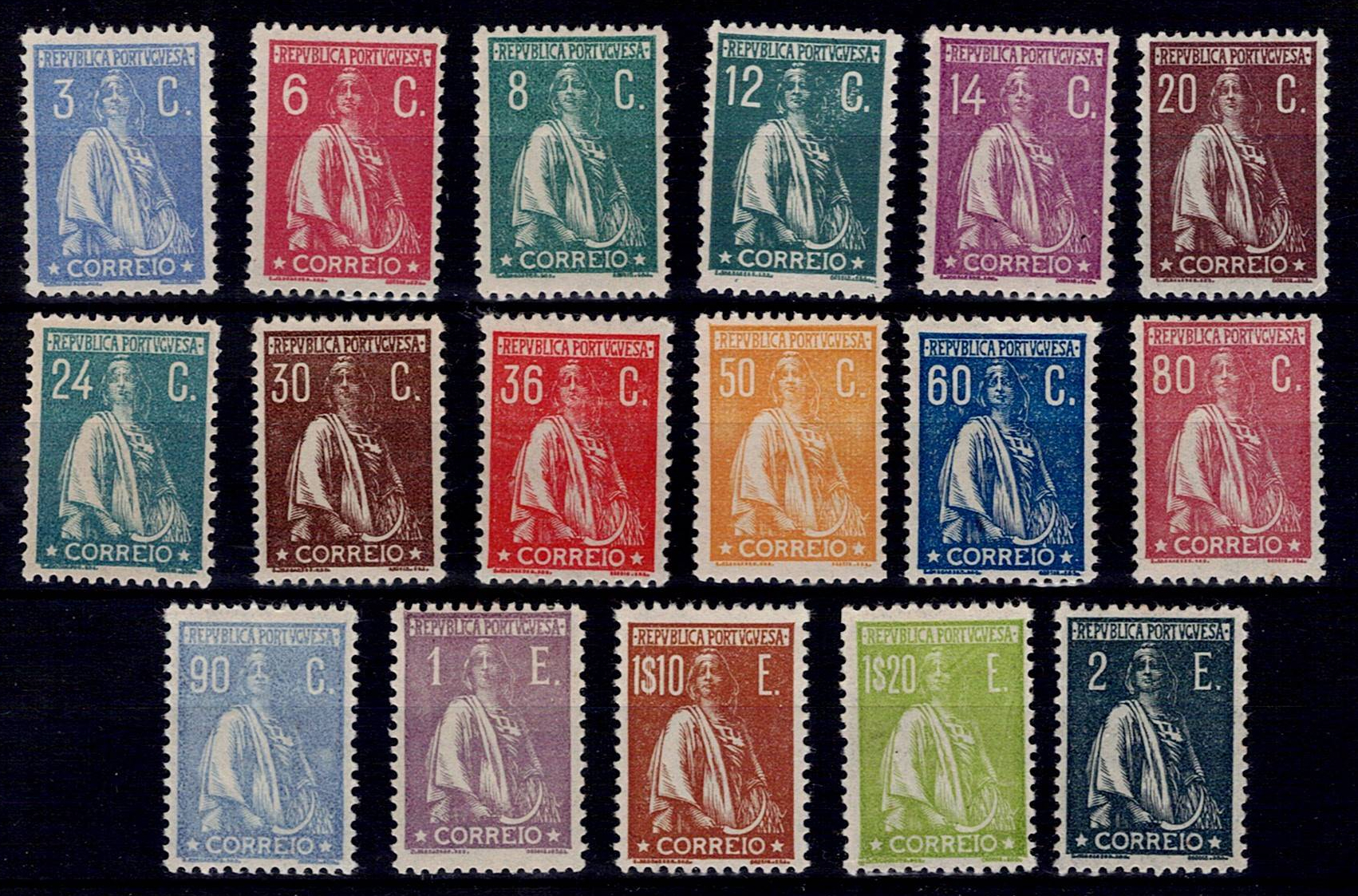 Portugal 1920 Ceres. Complete series of stamps on smooth paper with perforation 12, stamps Mf#235-251.
