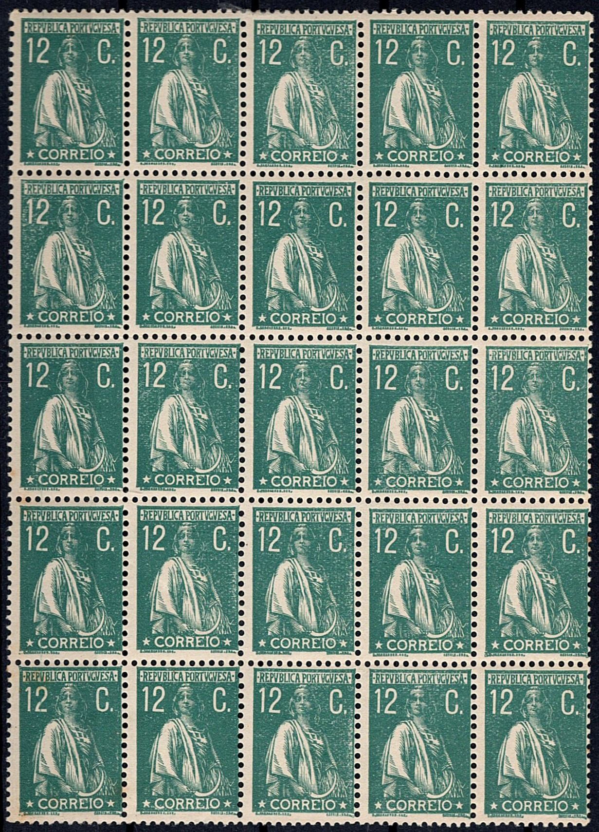 Portugal * 1920/22 – Ceres. New colors and values. MF238, 12c, blue-green, smooth paper, perforated