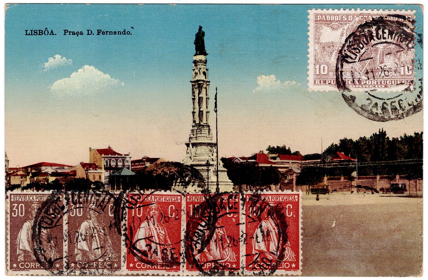 Postal history of Portugal. 1912 and 1926. Ceres issue. Illustrated postcard sent from Lisbon on