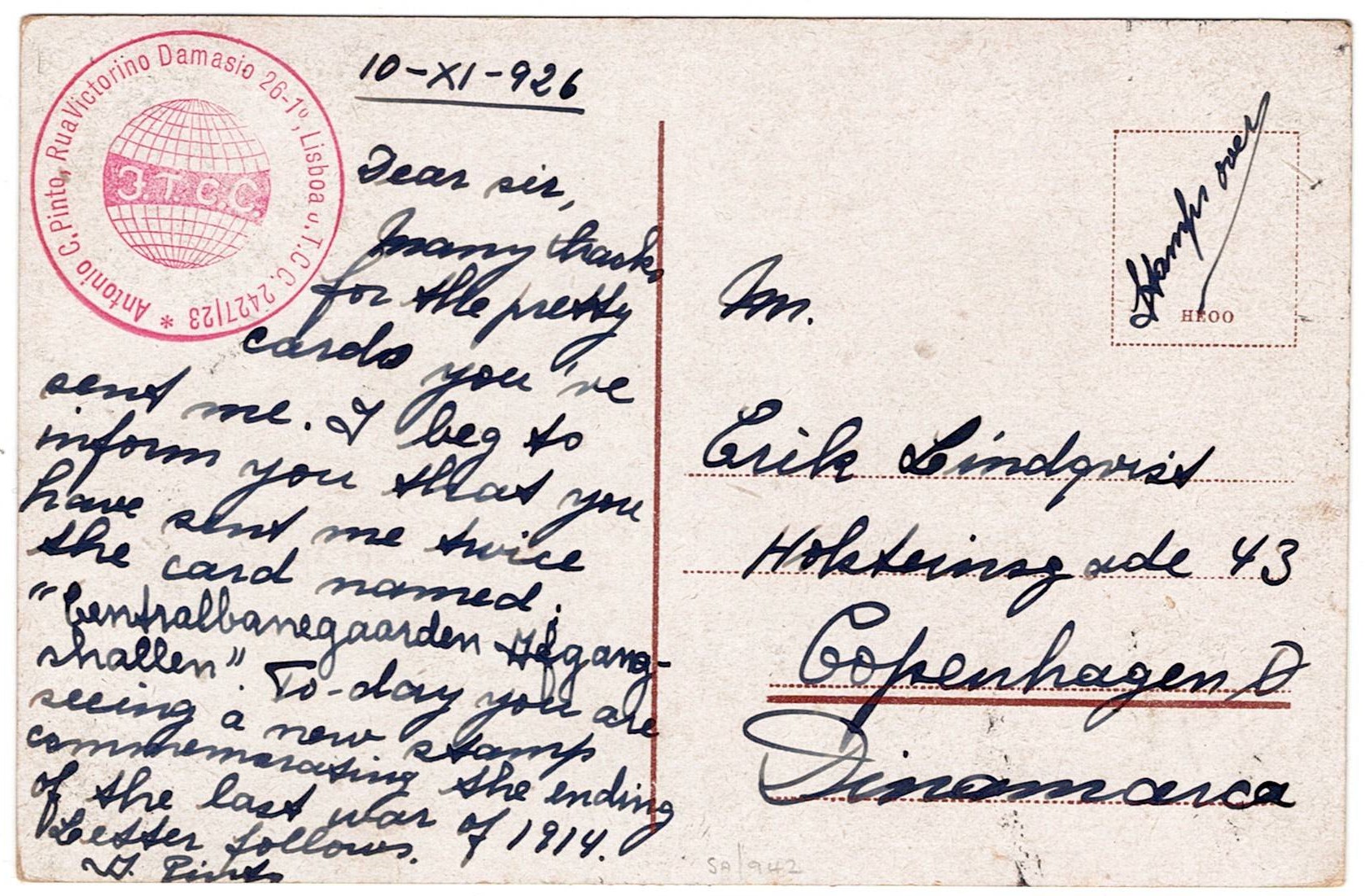 10 centavos) to Lisbon 16.3.(Image 1)