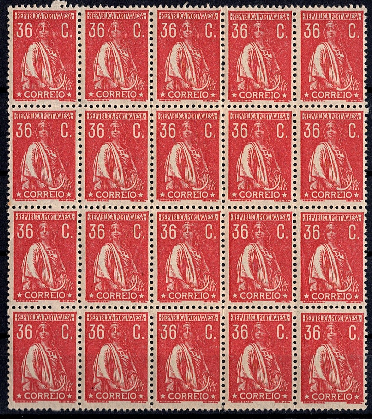 Portugal * 1920/22 – Ceres. New colors and values. MF243, 36c, red, smooth paper, perforated 12x11 ½.