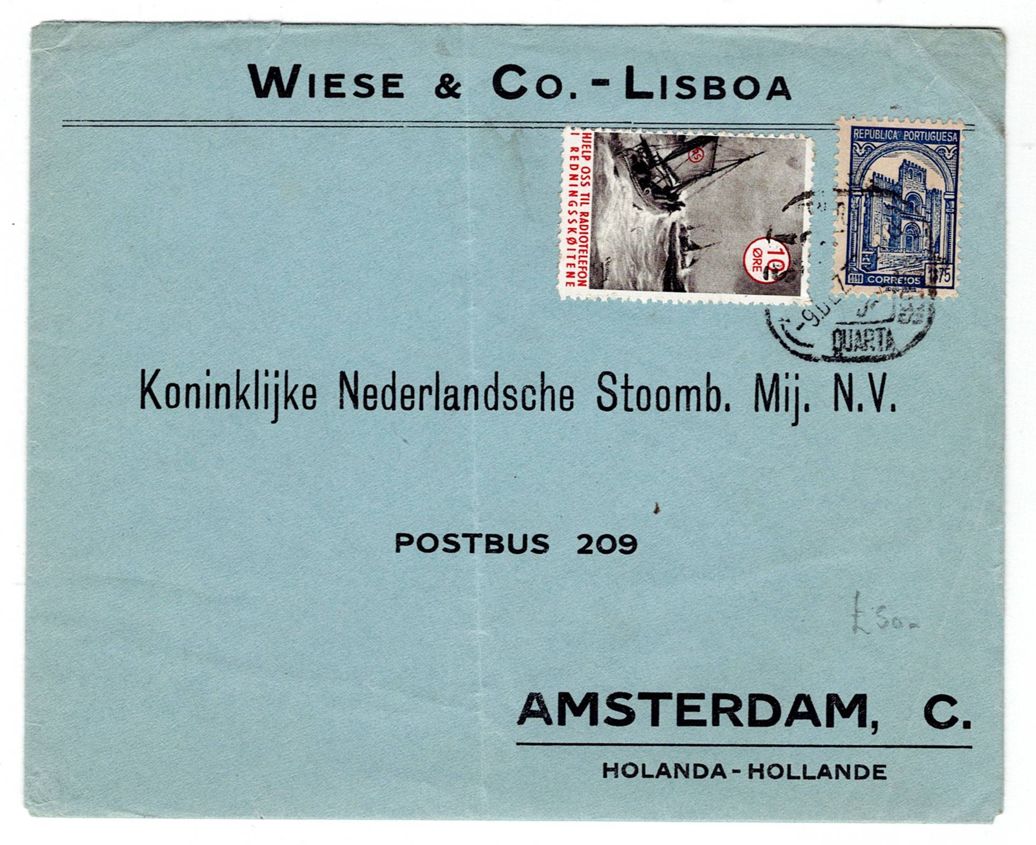 Portugal Issued by the Coimbra Cathedral. Letter from Lisbon 9.12.193? to Amsterdam, with advertising