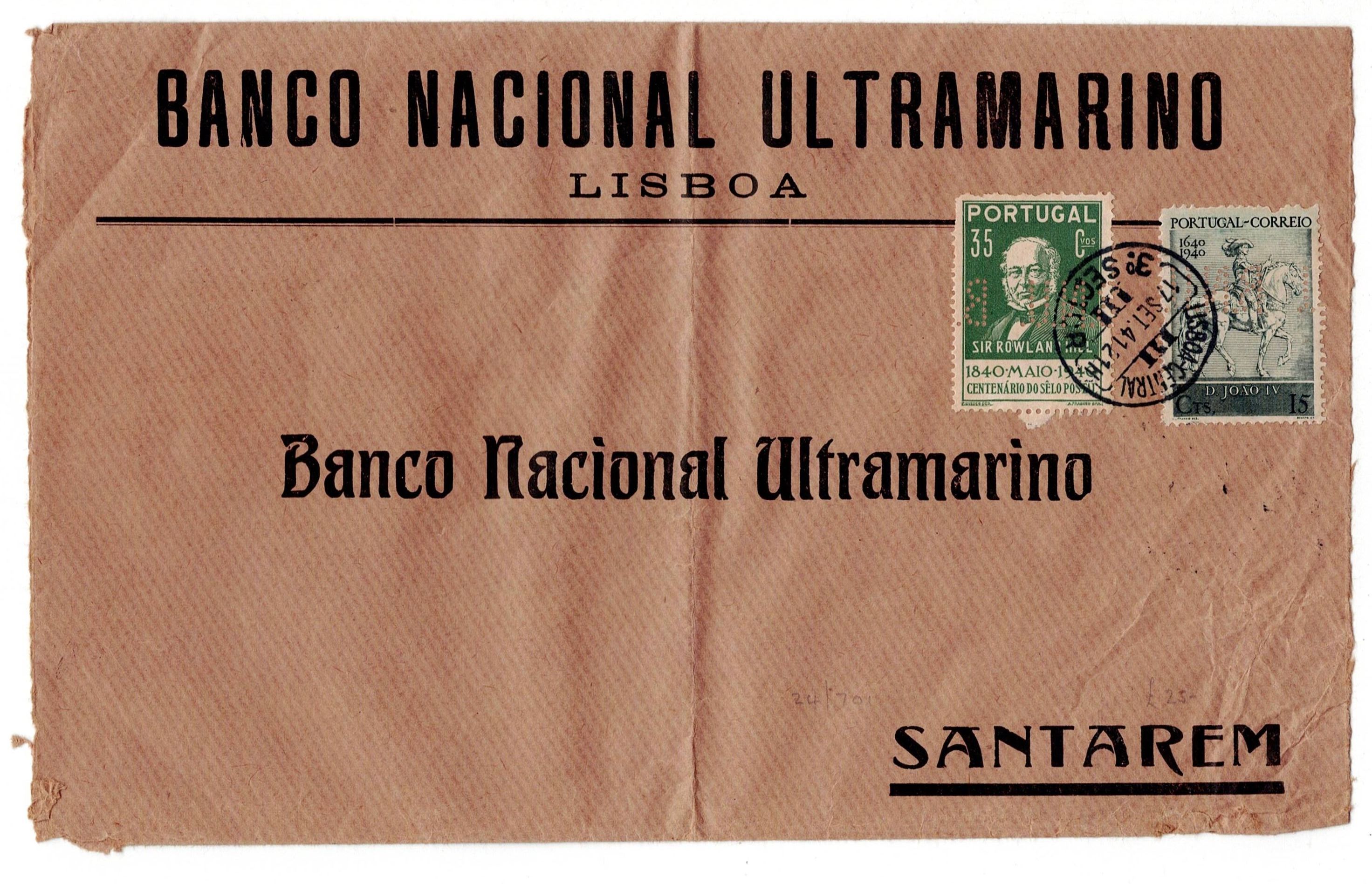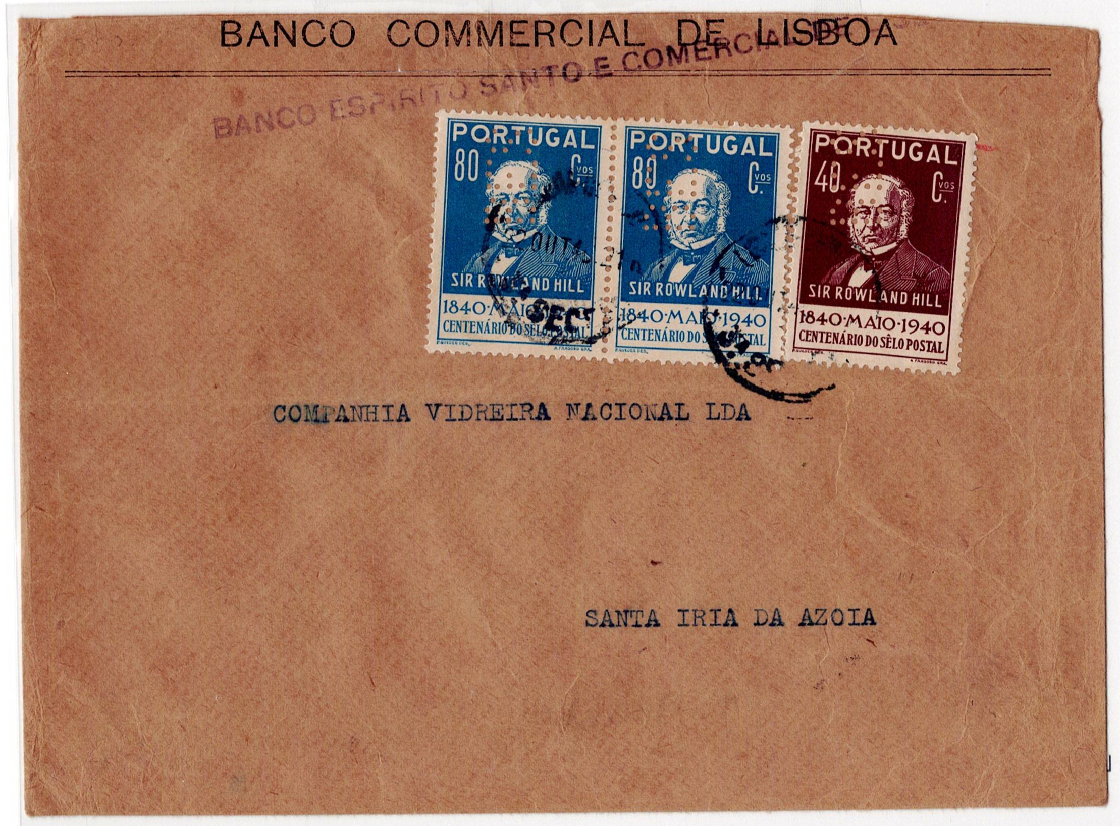 PERFINS. 1941. Letter from the Banco Nacional Ultramarino of Lisbon on 17.9, $50 postage (stamps of $35