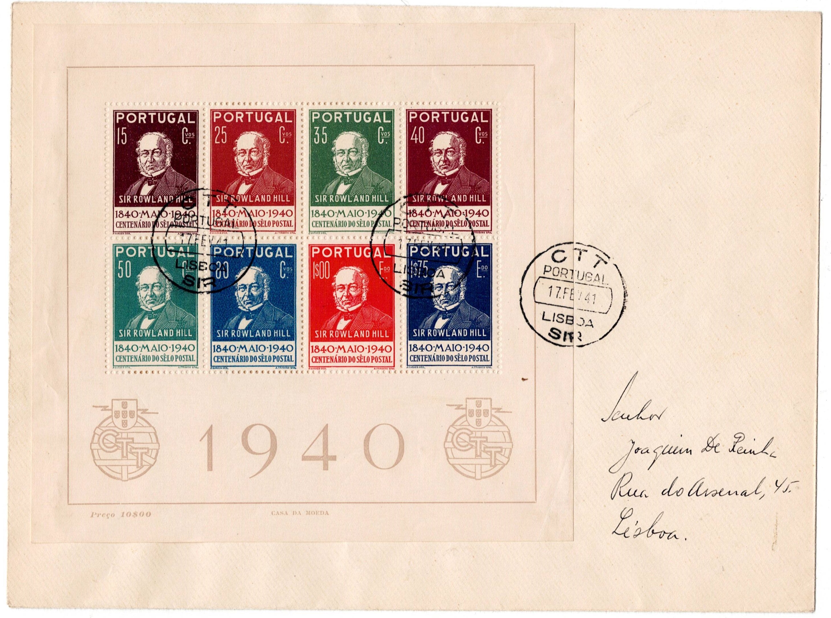 Portugal. 1940 1st centenary of Postage Stamp. Airmail, letter sent from Lisbon on April 12, 1941, by