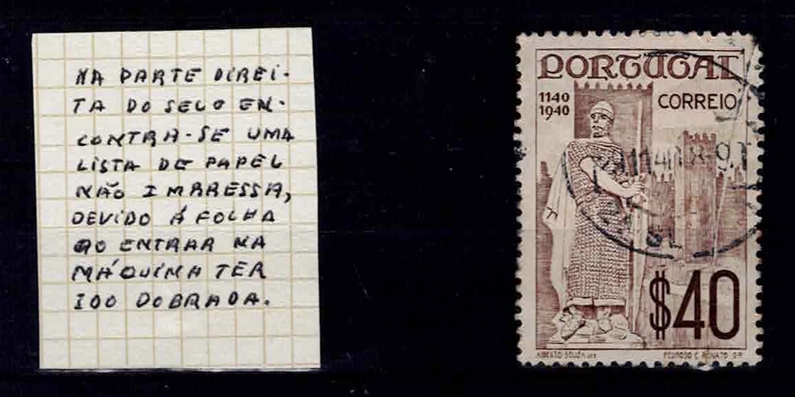 Portugal 1940 Centenary of the Foundation and Restoration. Stamp Mf#595, 40 c. brown, smooth paper, 11