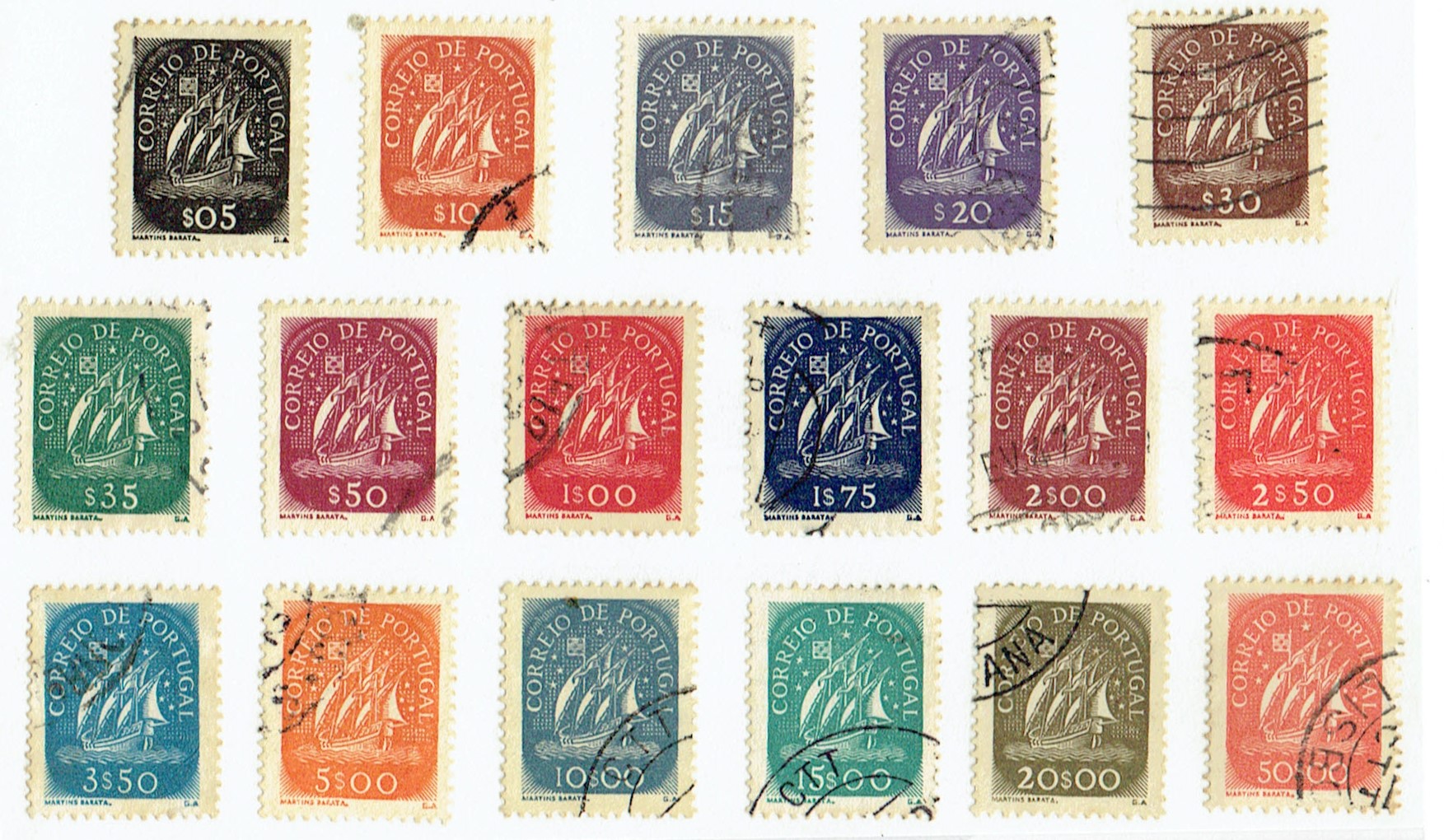 Portugal 1943 Caravela. Complete series Mf#617-633, smooth paper, perforation 14, in USED stamps