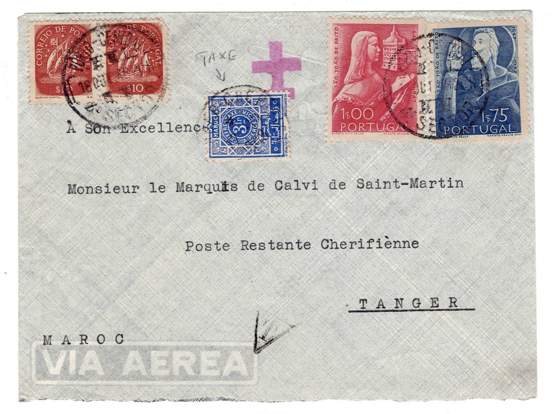Portugal. Morocco. 1948. letter from Lisbon 18.10. 1948 to the poste restante Xerifina de Tanger,